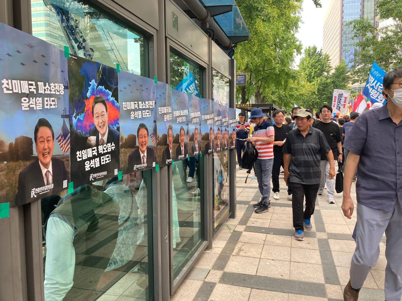기자회견·집회 민중민주당, 범국민대회 선전전 〈핵오염수투기비호 윤석열 타도!〉 2023년 8월 30일 FacebookTwitter 26일 민중민주당(민중당)은 한국프레스센터앞에서 열린 <후쿠시마 핵오염수 해양투기 중단! 투기용인 윤석열정부 규탄!> 범국민대회에 참여해 선전전을 진행했다. 당원들은 대회장소에 가로막 <북침핵전쟁책동 핵오염수투기비호 윤석열 타도!>을 내걸었다. 또 <친일매국 핵오염수 윤석열 타도!>, <친미매국 파쇼호전광 윤석열 타도!> 포스터150장을 부착했다.