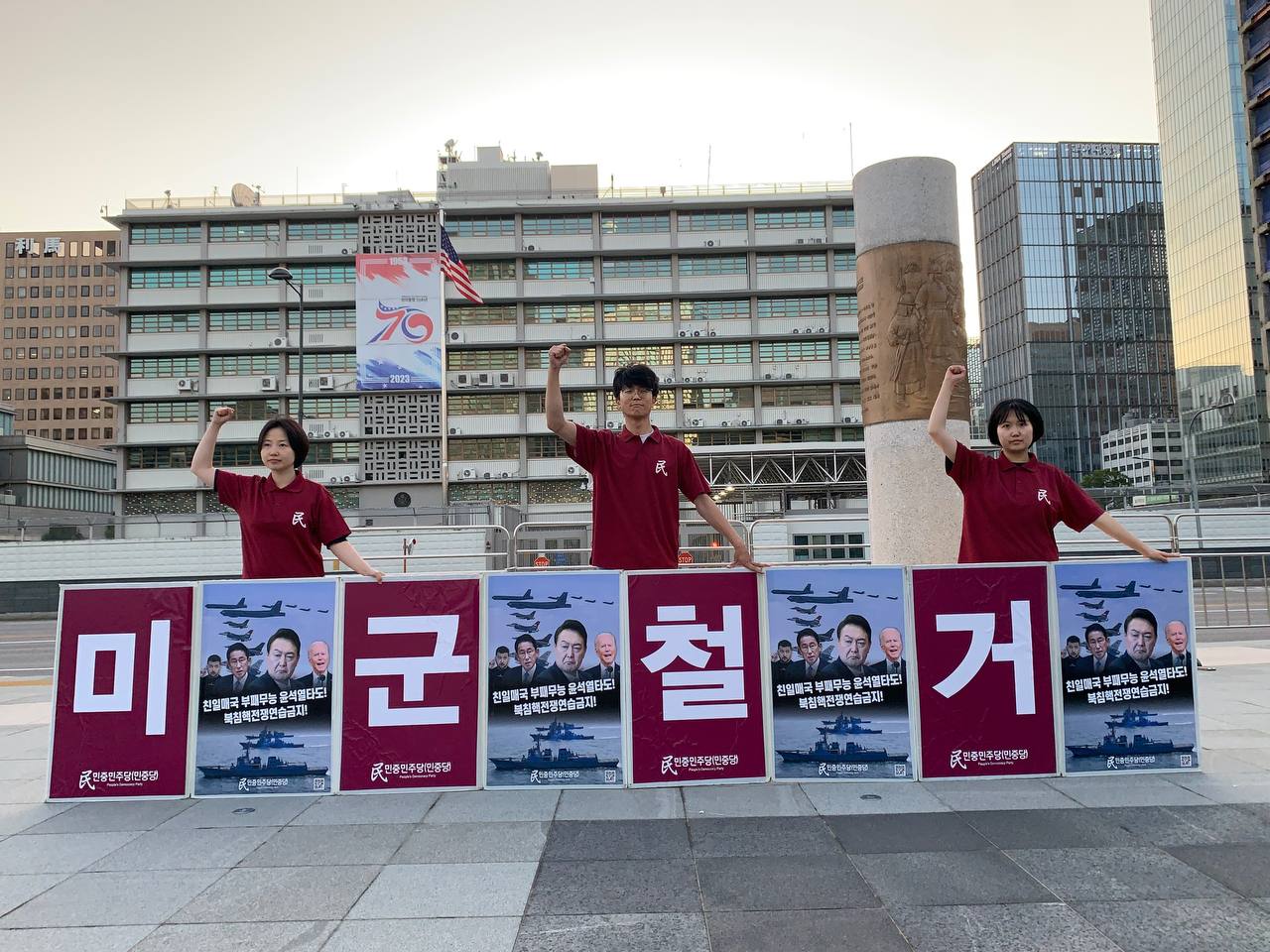 2일 민중민주당(민중당)은 미대사관앞에서 <친미호전윤석열타도! 북침핵전쟁책동중단! 핵전쟁화근 미군철거!> 구호를 들고 평화시위를 2631일째 전개했다.