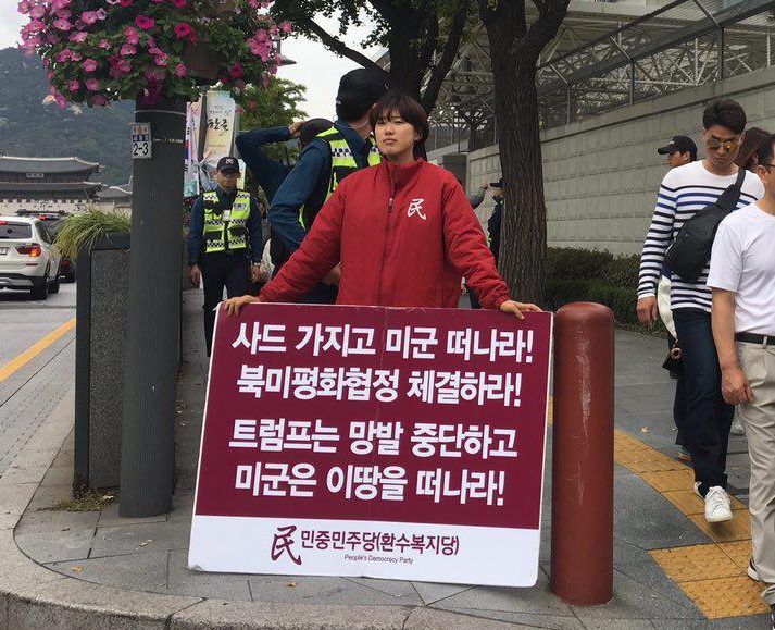 〈전쟁반대! 미국반대!〉 민중민주당 〈무기한 비상행동〉 미대사관앞 평화시위 445일째