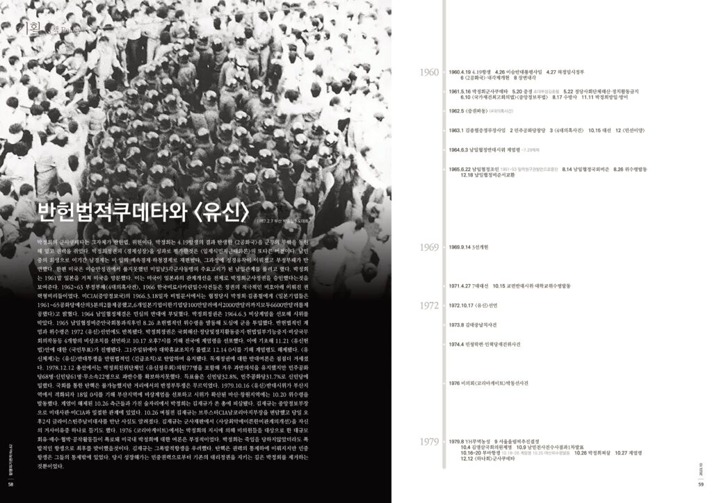 박정희의 군사쿠데타는 그자체가 반헌법, 위헌이다. 박정희는 4.19항쟁의 결과 탄생한 <2공화국>을 군부의 무력을 동원해 엎고 권력을 쥐었다. 박정희정권의 <경제성장>을 성과로 평가한것은 <일제식민지근대화론>의 또다른 버전이다. 남민중의 희생으로 이기간 남경제는 미·일의 예속경제·하청경제로 재편됐다. 그과정에 정경유착이 이뤄졌고 부정부패가 만연했다. 한편 미국은 이승만정권에서 풀지못했던 미일남3각군사동맹의 주요고리가 된 남일관계를 풀려고 했다. 박정희는 1961말 일본을 거쳐 미국을 방문했다. 이는 미국이 일본과의 관계개선을 전제로 박정희군사정권을 승인했다는것을 보여준다. 1962~63 부정부패<4대의혹사건>, 1966 한국비료사카린밀수사건등은 정권의 적극적인 비호아래 이뤄진 권력형비리들이었다. 미CIA(중앙정보국)의 1966.3.18일자 비밀문서에서는 협정당시 박정희·김종필에게 <일본기업들은1961~65공화당예산의3분의2를제공했고,6개일본기업이한기업당100만달러에서2000만달러까지모두6600만달러를제공했다>고 밝혔다. 1964 남일협정체결은 민심의 반대에 부딪혔다. 박정희정권은 1964.6.3 비상계엄을 선포해 시위를 막았다. 1965 남일협정비준안국회통과직후인 8.26 초헌법적인 위수령을 발동해 도심에 군을 투입했다. 반헌법적인 계엄과 위수령은 1972 <유신>선언에도 반복됐다. 박정희정권은 국회해산·정당및정치활동중지·헌법일부기능중지·비상국무회의작동등 4개항의 비상조치를 선언하고 10.17 오후7시를 기해 전국에 계엄령을 선포했다. 이에 기초해 11.21 <유신헌법>안에 대한 <국민투표>가 진행됐다. 그1주일뒤에야 대학휴교조치가 풀렸고 12.14 0시를 기해 계엄령도 해제됐다. <유신체제>는 <유신>반대투쟁을 반헌법적인 <긴급조치>로 탄압하며 유지됐다. 독재정권에 대한 반대여론은 점점더 거세졌다. 1978.12.12 총선에서는 박정희친위단체인 <유신정우회>의원77명을 포함해 겨우 과반의석을 유지했지만 민주공화당68명·신민당61명·무소속22명으로 과반수를 확보하지못했다. 득표율은 신민당32.8%, 민주공화당31.7%로 신민당에 밀렸다. 국회를 통한 탄핵은 불가능했지만 거리에서의 반정부투쟁은 무르익었다. 1979.10.16 <유신>반대시위가 부산지역에서 격화되자 18일 0시를 기해 부산지역에 비상계엄을 선포하고 시위가 확산된 마산·창원지역에는 10.20 위수령을 발동했다. 계엄이 해제된 10.26 측근들과 가진 술자리에서 박정희는 김재규가 쏜 총에 피살됐다. 김재규는 중앙정보부장으로 미대사관·미CIA와 밀접한 관계에 있었다. 10.26 며칠전 김재규는 브루스터CIA남코리아지부장을 면담했고 당일 오후2시 글라이스틴주남미대사를 만난 사실도 알려졌다. 김재규는 군사재판에서 <사상최악에이른한미관계의개선>을 자신의 거사이유중 하나로 들기도 했다. 1976 <코리아게이트>에서는 박정희의 지시에 의해 미의원들을 대상으로 한 대규모회유·매수·협박·공작활동들이 폭로돼 미국내 박정희에 대한 여론은 부정적이었다. 박정희는 죽임을 당하지않았더라도 폭발적인 항쟁으로 최후를 맞이했을것이다. 김재규는 그폭발적항쟁을 우려했다. 탄핵은 권력의 통제하에 이뤄지지만 민중항쟁은 그들의 통제밖에 있었다. 당시 성장해가는 민중권력으로부터 기존의 대리정권을 지키는 길은 박정희를 제거하는것뿐이었다.