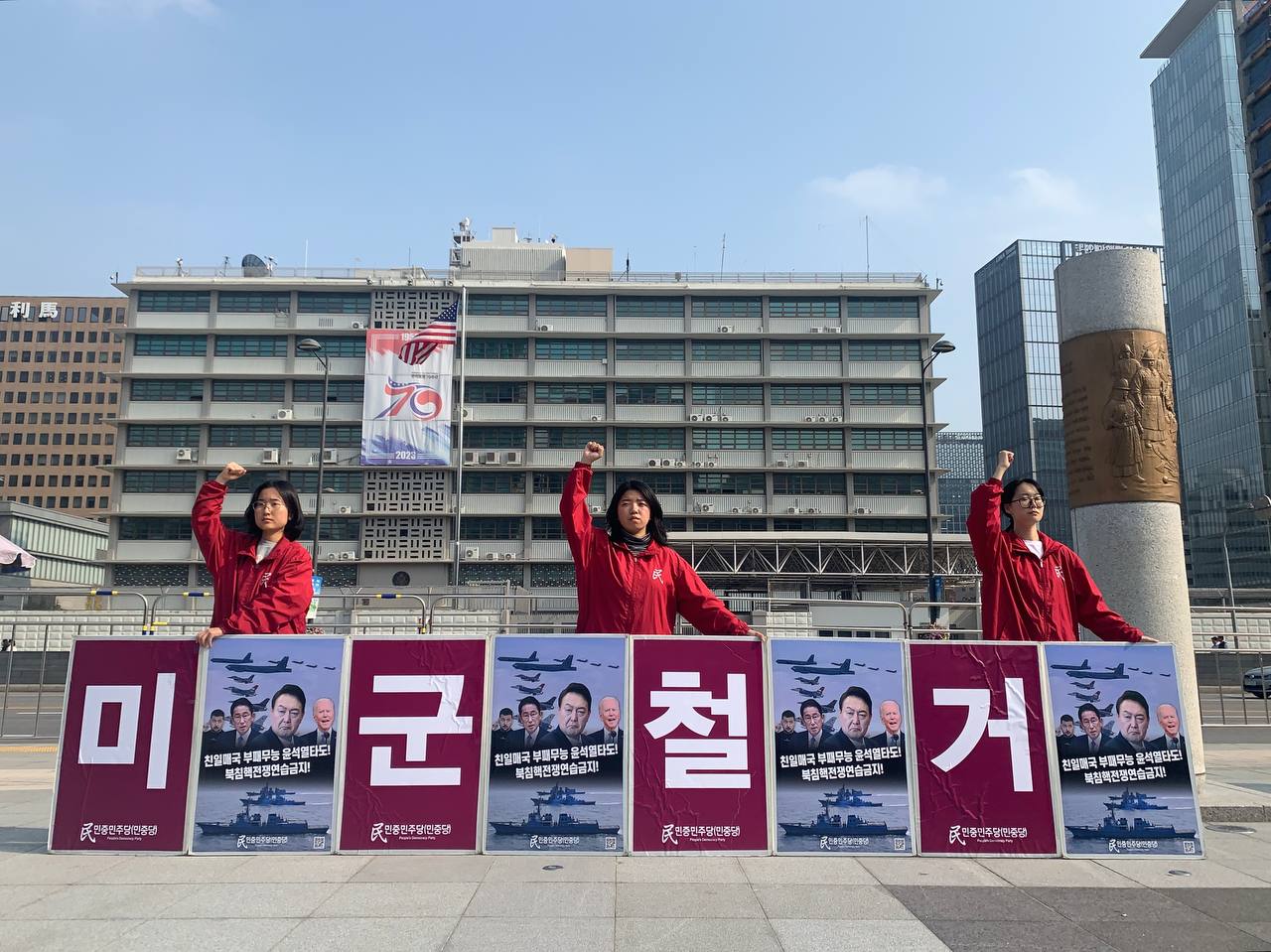 <친일매국 부패무능 윤석열타도! 북침핵전쟁연습금지!> 미대사관앞정당연설회는 1702일째 진행됐다.