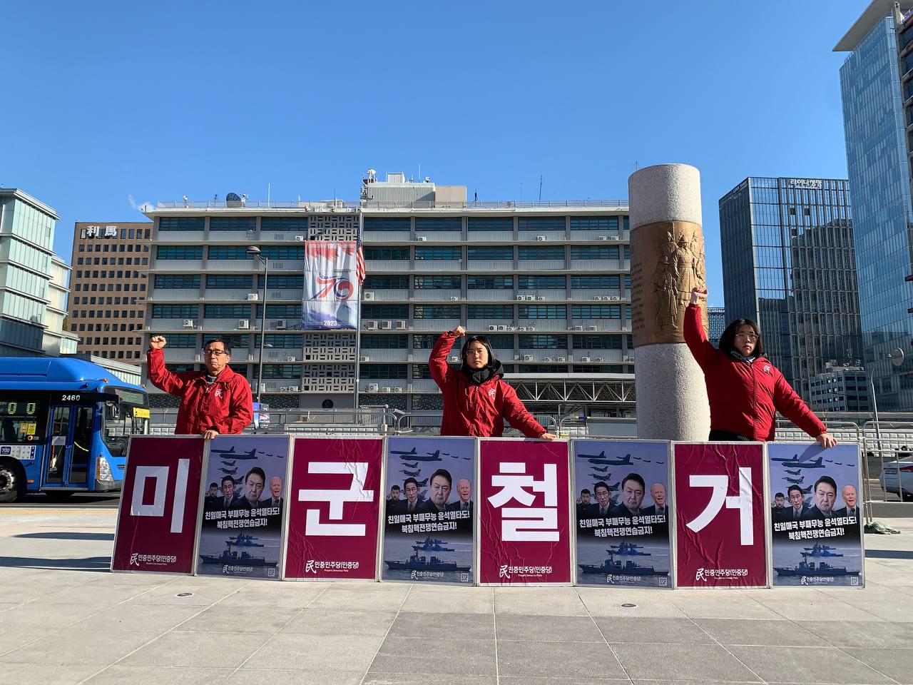 <친일매국 부패무능 윤석열타도! 북침핵전쟁연습금지!> 미대사관앞정당연설회는 1755일째 진행됐다.