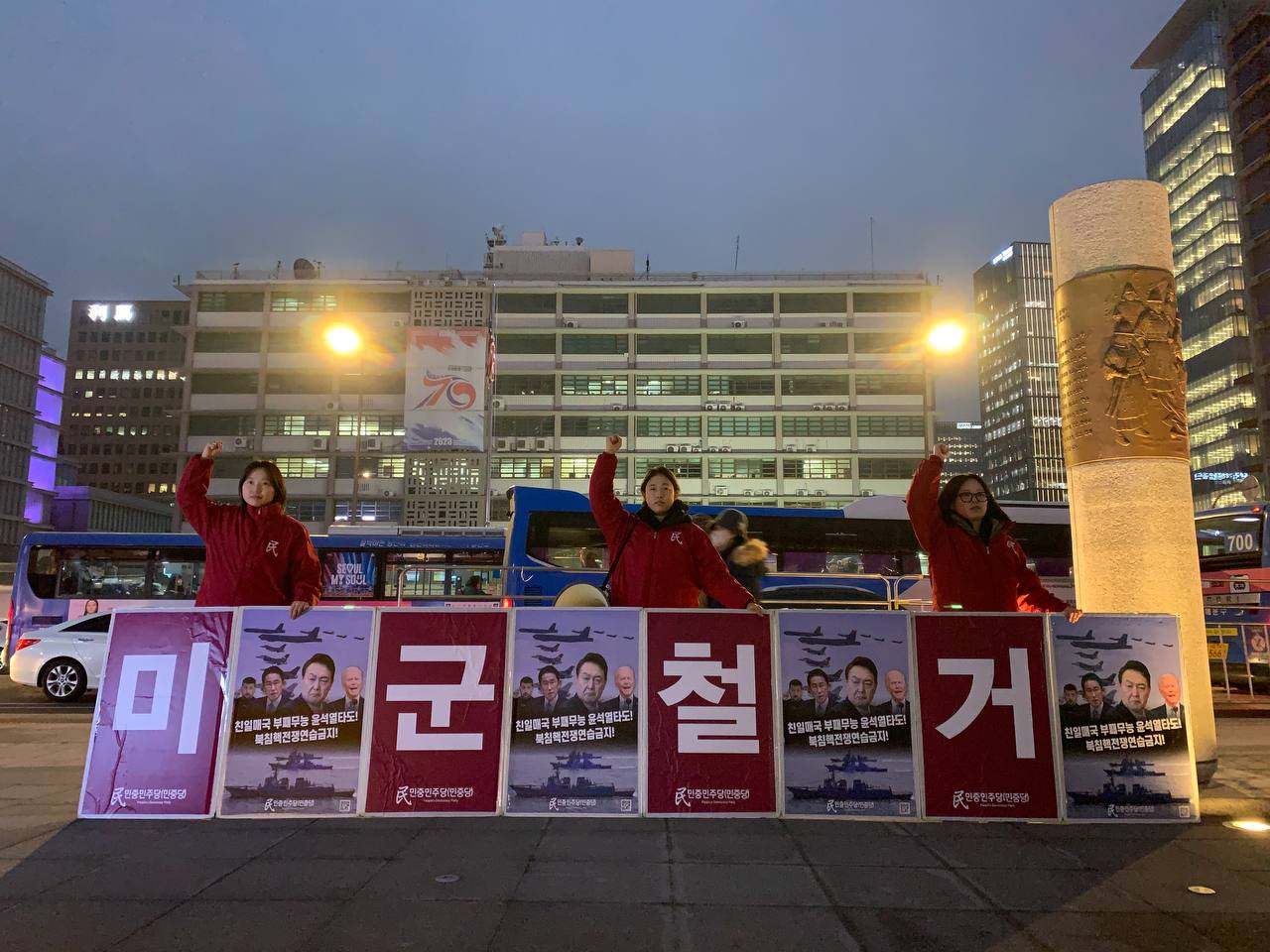 <친일매국 부패무능 윤석열타도! 북침핵전쟁연습금지!> 미대사관앞정당연설회는 1761일째 진행됐다.