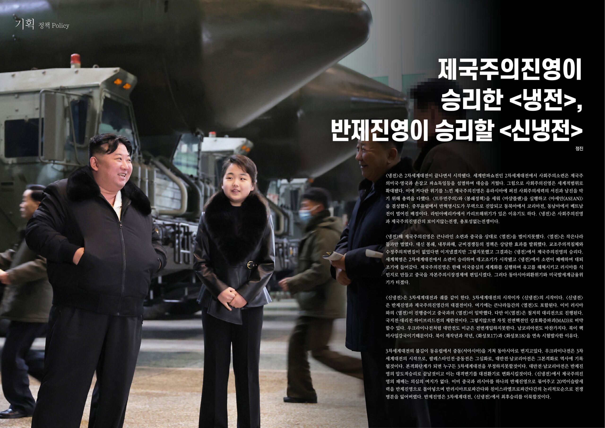 3차세계대전의 불길이 동유럽에서 중동(서아시아)을 거쳐 동아시아로 번지고있다. 우크라이나전은 3차세계대전의 시작으로, 팔레스타인전·중동전은 그심화로, 대만전·남코리아전은 그본격화로 역사에 기록될것이다. 본격화단계가 되면 누구든 3차세계대전을 부정하지못할것이다. 대만전·남코리아전은 반제진영의 압도적승리로 끝날것이고 이는 대격변기를 대전환기로 변화시킬것이다. <신냉전>에서 제국주의진영의 패배는 의심의 여지가 없다. 이미 중국과 러시아를 하나의 반제진영으로 묶어주고 20억이슬람세력을 반제진영으로 몰아넣으며 반러시아프로파간다와 친이스라엘프로파간다간의 논리적모순으로 전쟁명분을 잃어버렸다. 반제진영은 3차세계대전, <신냉전>에서 최후승리를 이룩할것이다.
