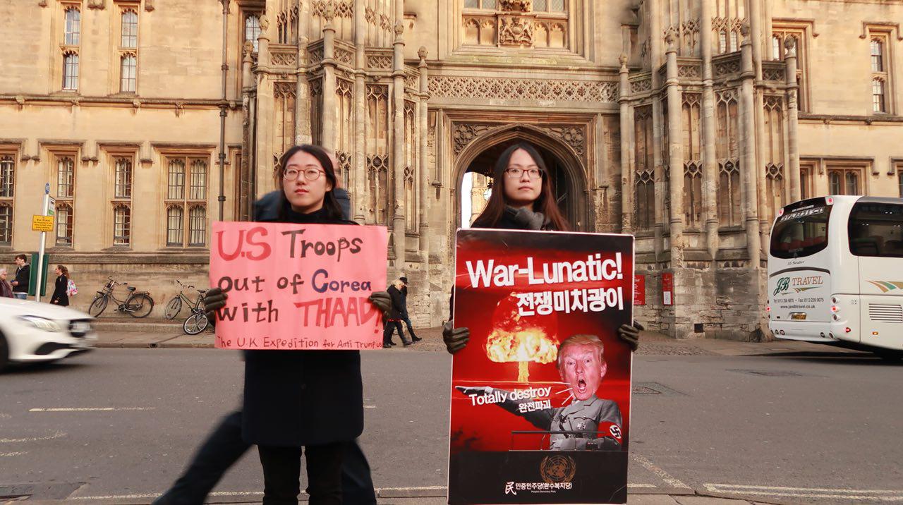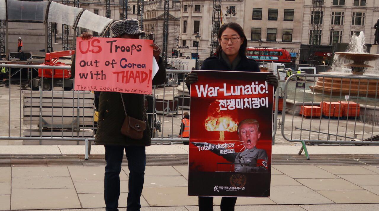 원정단은 <트럼프는 전쟁미치광이!>·<트럼프 전쟁행각 결사반대!>·<사드가지고 미군떠나라!>·<We oppose Trump’s visit to Asia for war!>·<U.S troops out of Corea with THAAD!> 등의 구호판을 들었습니다.