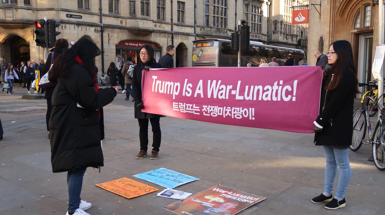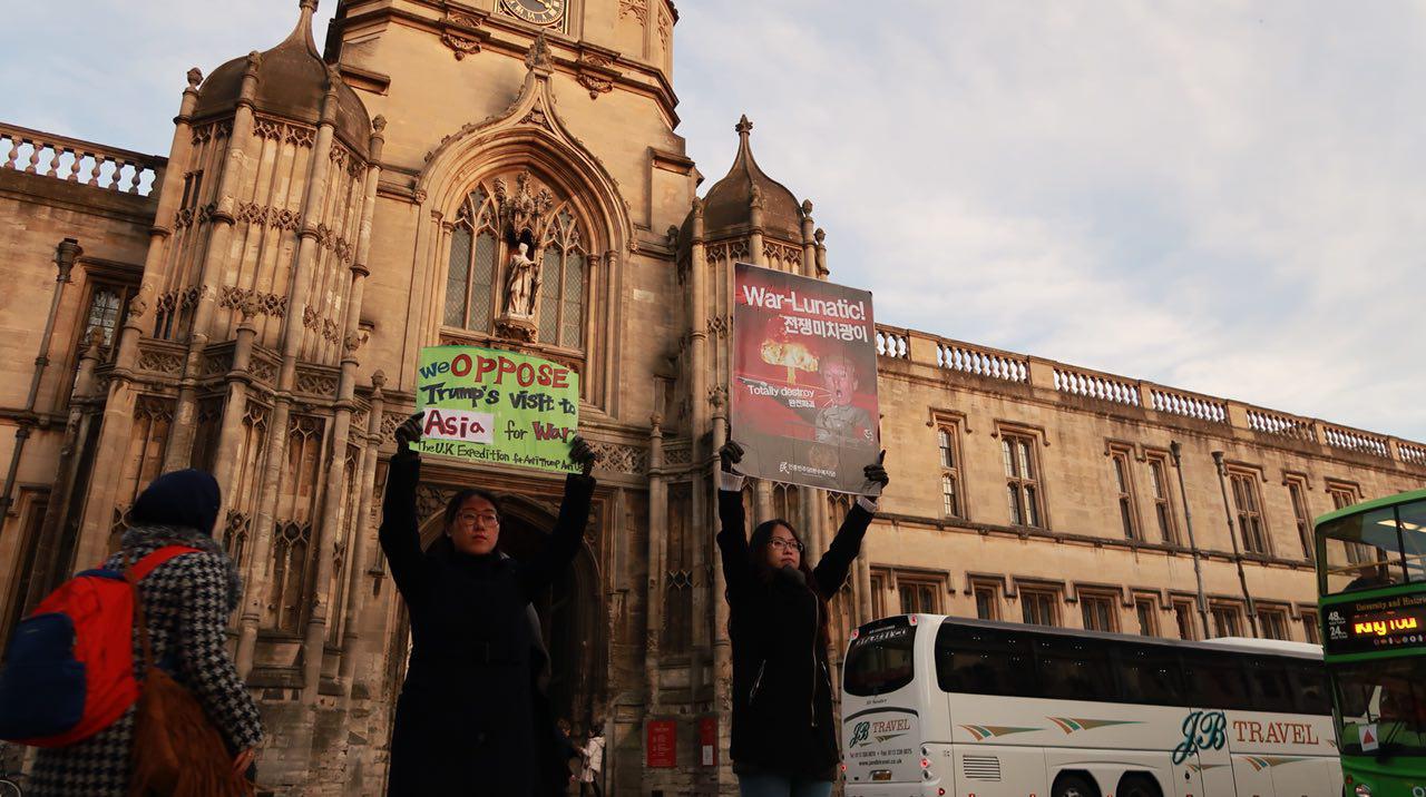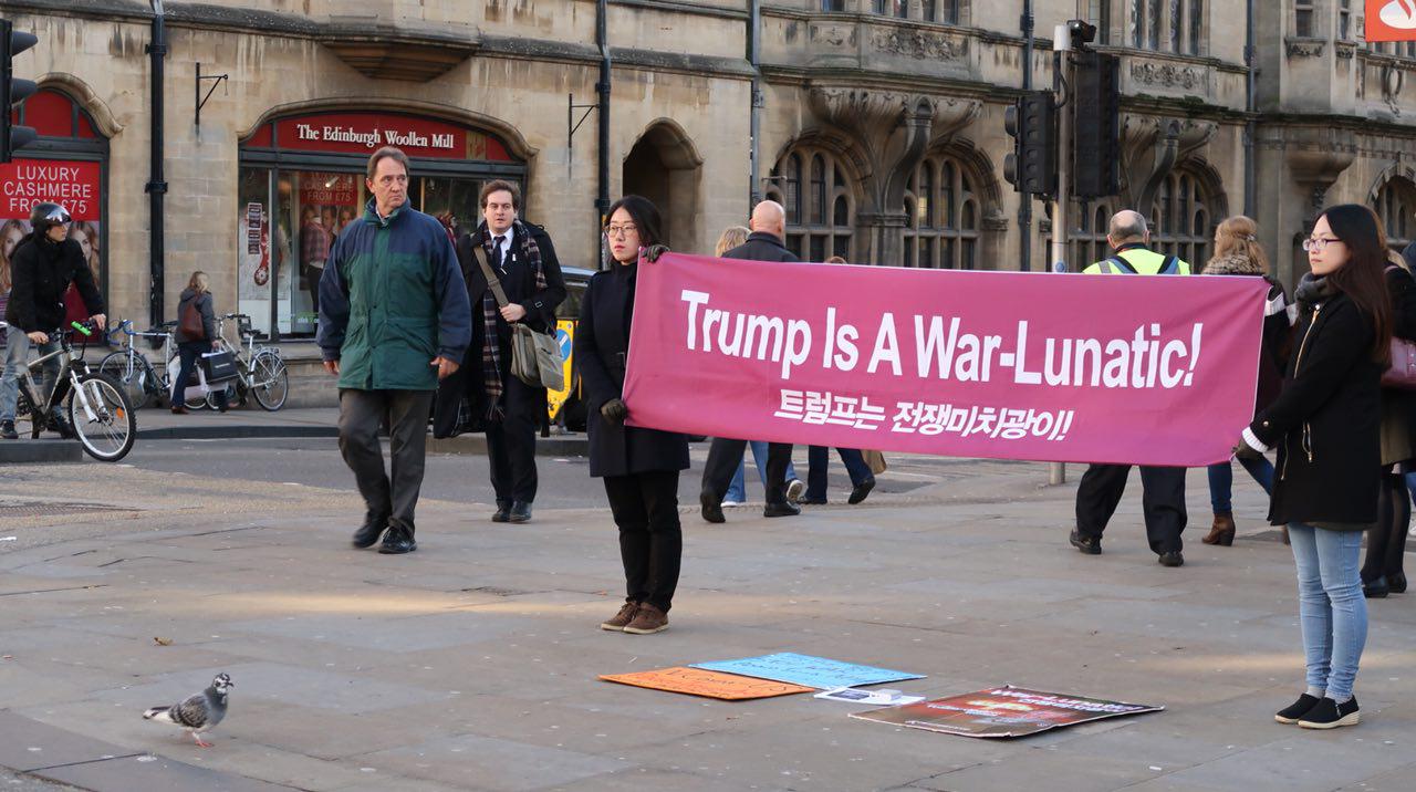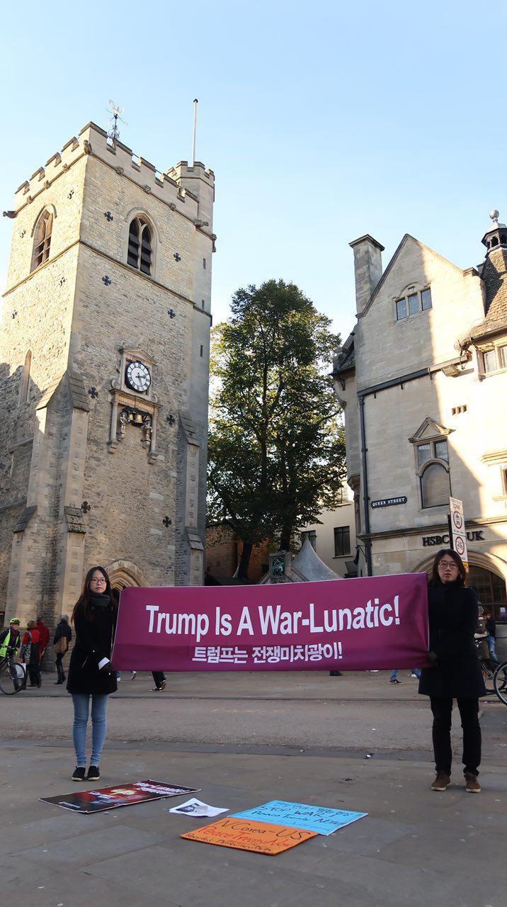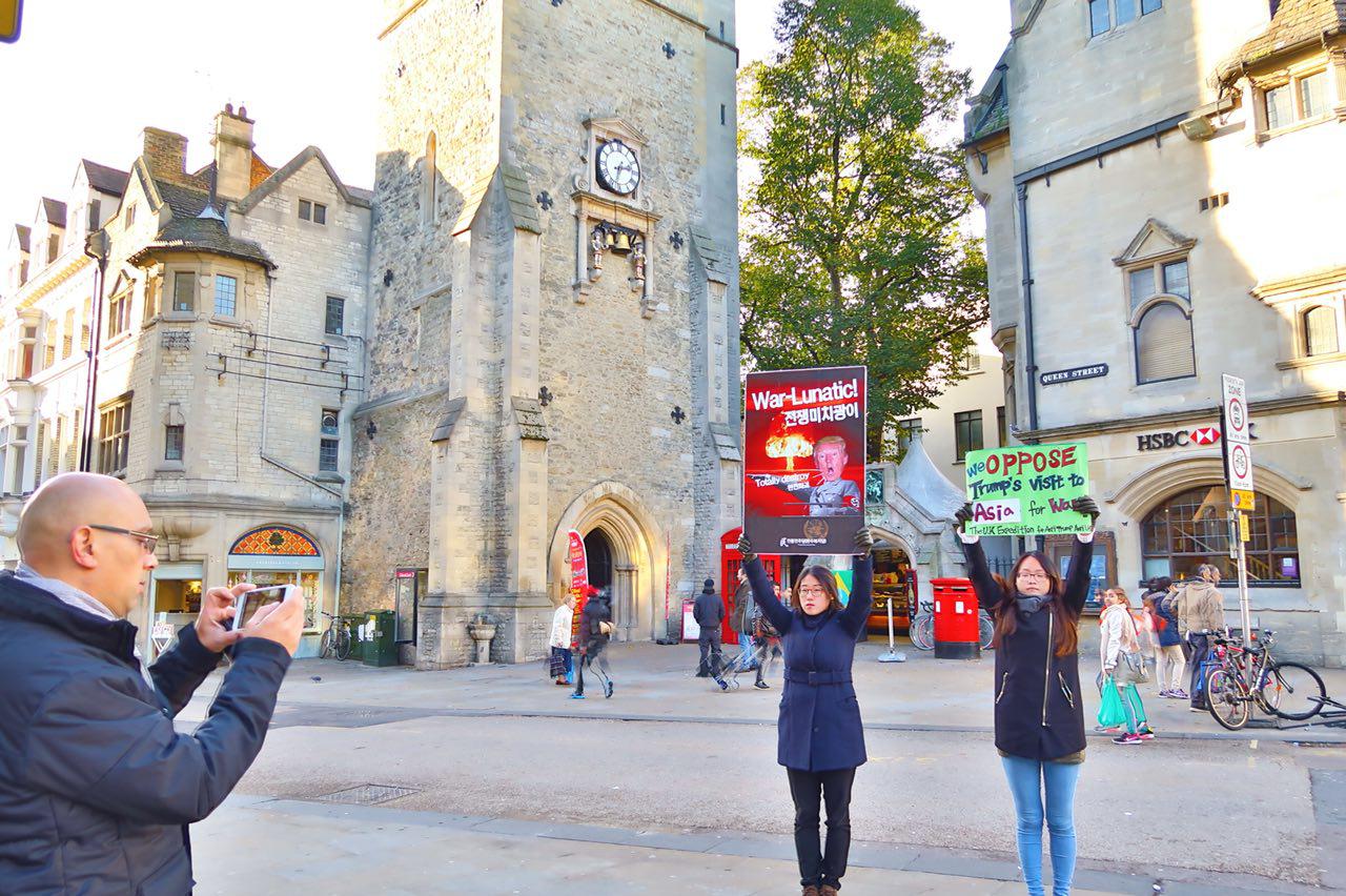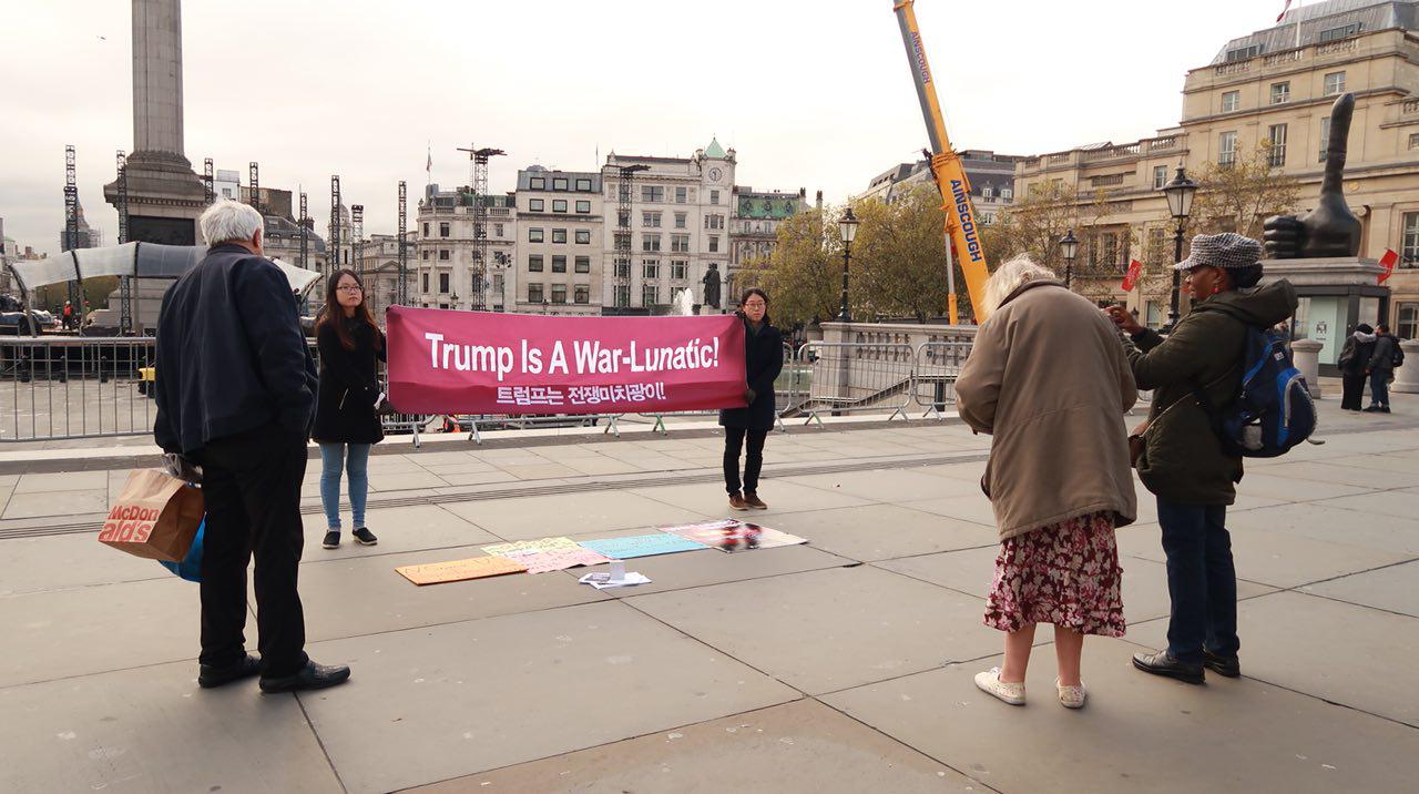 민중민주당(환수복지당) 영국반트럼프반미원정단은 11월8일 런던 트라팔가광장과 옥스퍼드에서 원정4일차 시위를 진행했습니다.