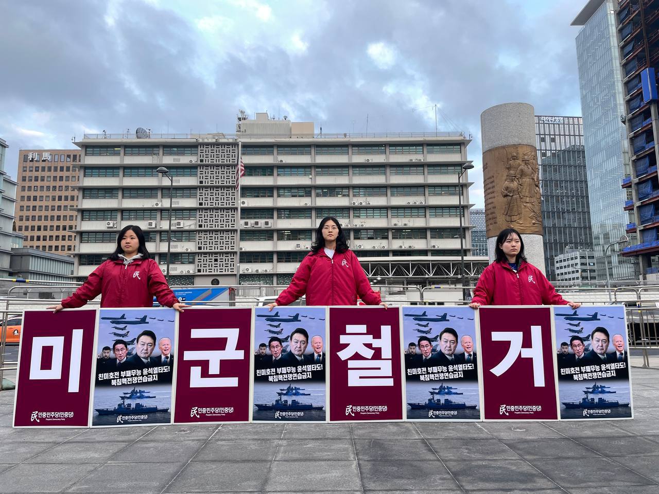 <친일매국 부패무능 윤석열타도! 북침핵전쟁연습금지!> 미대사관앞정당연설회는 1808일째 진행됐다.