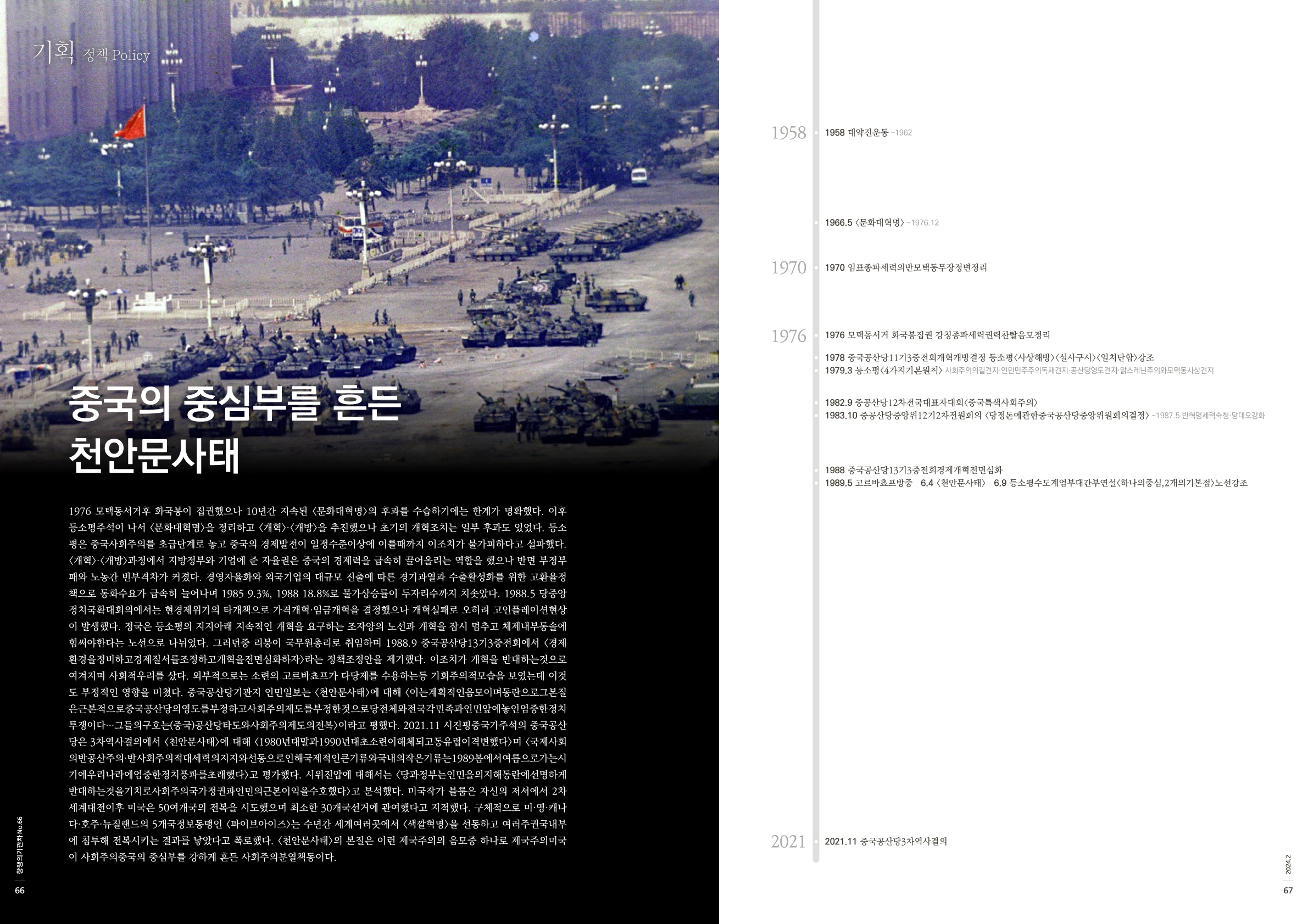 1976 모택동서거후 화국봉이 집권했으나 10년간 지속된 <문화대혁명>의 후과를 수습하기에는 한계가 명확했다. 이후 등소평주석이 나서 <문화대혁명>을 정리하고 <개혁>·<개방>을 추진했으나 초기의 개혁조치는 일부 후과도 있었다. 등소평은 중국사회주의를 초급단계로 놓고 중국의 경제발전이 일정수준이상에 이를때까지 이조치가 불가피하다고 설파했다. <개혁>·<개방>과정에서 지방정부와 기업에 준 자율권은 중국의 경제력을 급속히 끌어올리는 역할을 했으나 반면 부정부패와 노농간 빈부격차가 커졌다. 경영자율화와 외국기업의 대규모 진출에 따른 경기과열과 수출활성화를 위한 고환율정책으로 통화수요가 급속히 늘어나며 1985 9.3%, 1988 18.8%로 물가상승률이 두자리수까지 치솟았다. 1988.5 당중앙정치국확대회의에서는 현경제위기의 타개책으로 가격개혁·임금개혁을 결정했으나 개혁실패로 오히려 고인플레이션현상이 발생했다. 정국은 등소평의 지지아래 지속적인 개혁을 요구하는 조자양의 노선과 개혁을 잠시 멈추고 체제내부통솔에 힘써야한다는 노선으로 나뉘었다. 그러던중 리붕이 국무원총리로 취임하며 1988.9 중국공산당13기3중전회에서 <경제환경을정비하고경제질서를조정하고개혁을전면심화하자>라는 정책조정안을 제기했다. 이조치가 개혁을 반대하는것으로 여겨지며 사회적우려를 샀다. 외부적으로는 소련의 고르바쵸프가 다당제를 수용하는등 기회주의적모습을 보였는데 이것도 부정적인 영향을 미쳤다. 중국공산당기관지 인민일보는 <천안문사태>에 대해 <이는계획적인음모이며동란으로그본질은근본적으로중국공산당의영도를부정하고사회주의제도를부정한것으로당전체와전국각민족과인민앞에놓인엄중한정치투쟁이다…그들의구호는(중국)공산당타도와사회주의제도의전복>이라고 평했다. 2021.11 시진핑중국가주석의 중국공산당은 3차역사결의에서 <천안문사태>에 대해 <1980년대말과1990년대초소련이해체되고동유럽이격변했다>며 <국제사회의반공산주의·반사회주의적대세력의지지와선동으로인해국제적인큰기류와국내의작은기류는1989봄에서여름으로가는시기에우리나라에엄중한정치풍파를초래했다>고 평가했다. 시위진압에 대해서는 <당과정부는인민을의지해동란에선명하게반대하는것을기치로사회주의국가정권과인민의근본이익을수호했다>고 분석했다. 미국작가 블룸은 자신의 저서에서 2차세계대전이후 미국은 50여개국의 전복을 시도했으며 최소한 30개국선거에 관여했다고 지적했다. 구체적으로 미·영·캐나다·호주·뉴질랜드의 5개국정보동맹인 <파이브아이즈>는 수년간 세계여러곳에서 <색깔혁명>을 선동하고 여러주권국내부에 침투해 전복시키는 결과를 낳았다고 폭로했다. <천안문사태>의 본질은 이런 제국주의의 음모중 하나로 제국주의미국이 사회주의중국의 중심부를 강하게 흔든 사회주의분열책동이다.