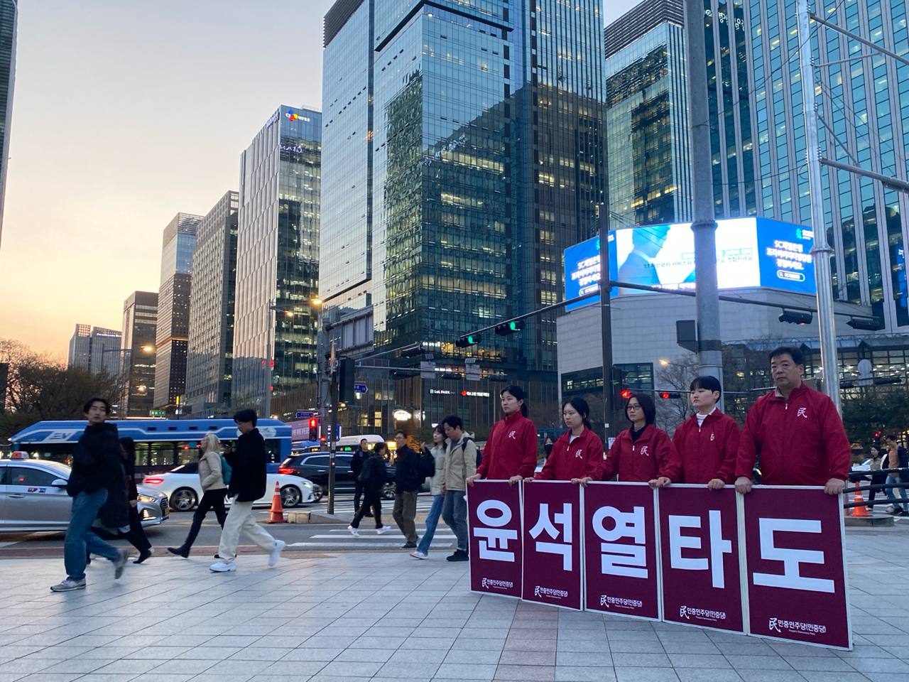 <윤석열타도> 구호를 내세우고 8차정당연설회가 종각역앞에서 진행됐다.