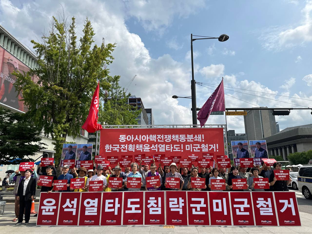 세계반제플랫포옴(The World Anti-imperialist Platform)·반미투쟁본부가 주최하는 <동아시아핵전쟁책동분쇄! 한국전획책윤석열타도! 미군철거!> 6월세계반제동시투쟁이 15일 미대사관앞에서 진행됐다.