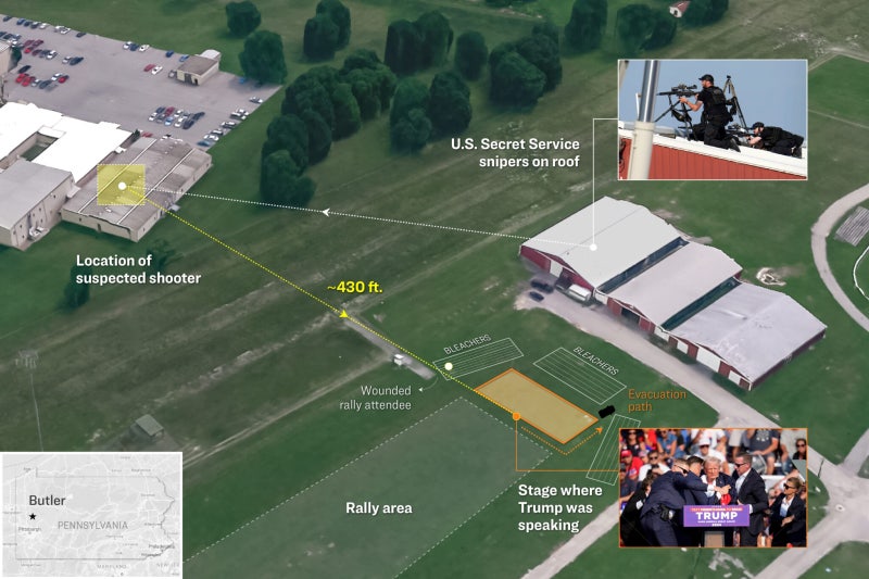 비밀경호국의 안일한 대처에 각종의혹이 제기됐다. 7.17 ABC방송의 인용보도에 따르면 범행 약1시간전 당국은 트럼프암살을 시도했던 총격범을 요주의인물로 지목했다. 범행 20분전에는 이미 비밀경호국저격수가 그의 위치를 파악했다. 또 보도는 FBI(미연방수사국)·비밀경호국등이 이내용들을 의회에 보고했다고 전했다. 범인은 유세현장과 불과 135m 떨어진 창고건물옥상에서 트럼프를 저격했다. BBC는 당시 현장에서 저격범을 목격·제보한 트럼프지지자와의 인터뷰를 보도했다. 머스크테슬라CEO는 비밀경호국이 극도로 무능력이거나 고의적으로 방치했다고 본다, 어느쪽이든 비밀경호국지도부는 이번 일로 그만둬야한다고 규탄했다. 미국토안보부산하 비밀경호국은 대통령경호등을 수행하는 미연방정부의 법집행기관이다. 한편 현직FBI직원이 SNS에, 저승사자가 트럼프를 인형뽑기기계에서 뽑다가 떨어뜨리는 그림에 <아깝다>는 글귀가 적혀있는 밈을 가져다 <이밈은정말최고>라고 올렸다가 논란이 일자 계정을 삭제했다.