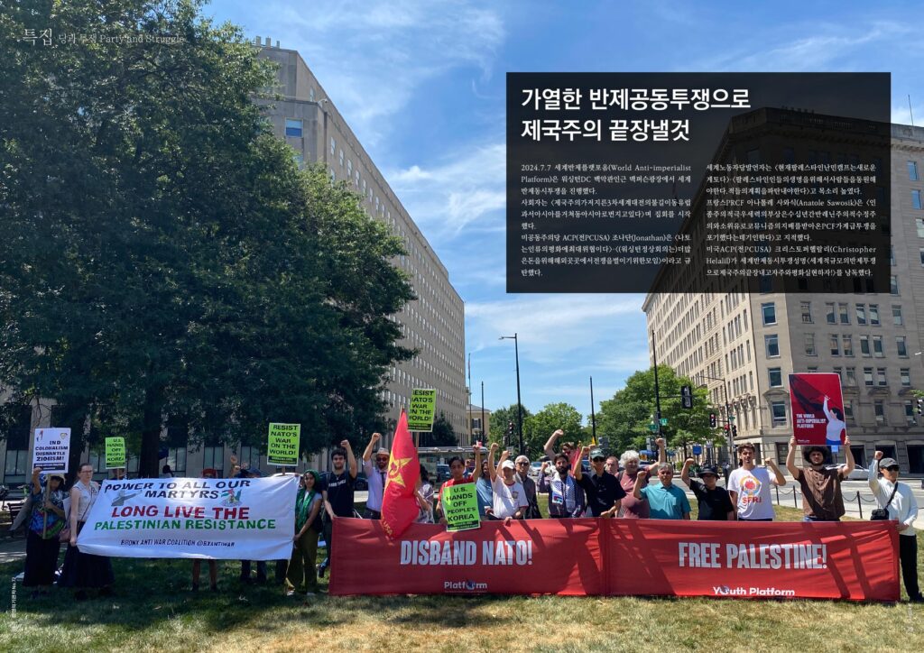 2024.7.7 세계반제플랫포옴(World Anti-imperialist Platform)은 워싱턴DC 백악관인근 맥퍼슨광장에서 세계반제동시투쟁을 진행했다.