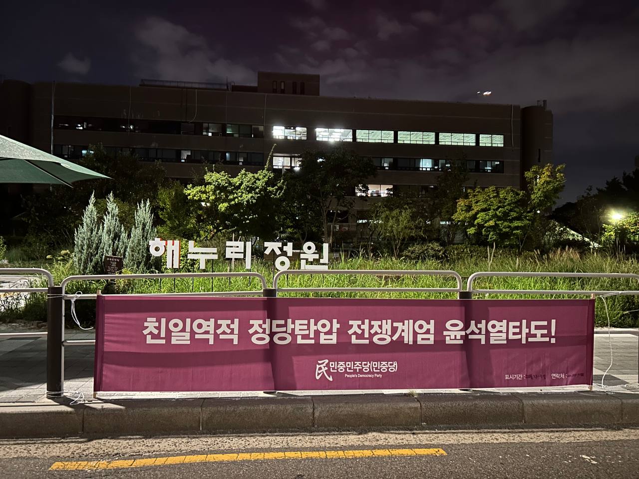 3일 민중민주당서울시당은 신도림역·가산디지털단지역·양천구청역·목동역·화곡역 등에 <합헌정당 파쇼탄압 전쟁계엄음모 윤석열타도!>, <검찰파쇼 전쟁계엄음모 윤석열 타도하자!>, <친일역적 용산총독 윤석열 타도하자!>, <친일역적 정당탄압 전쟁계엄 윤석열 타도!>, <부패무능 정당탄압 전쟁계엄 윤석열타도!>, <검찰파쇼 정당탄압 전쟁계엄 윤석열타도!> 구호의 가로막을 내걸었다.