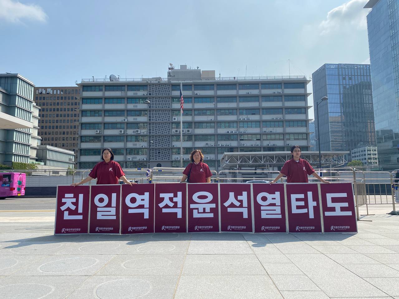당원들은 <친일역적 정당탄압 윤석열 타도하자!>, <검찰독재 민주파괴 윤석열 타도하자!>, <희대의 파쇼악법 국가보안법 철폐하라!> 구호를 외쳤다.