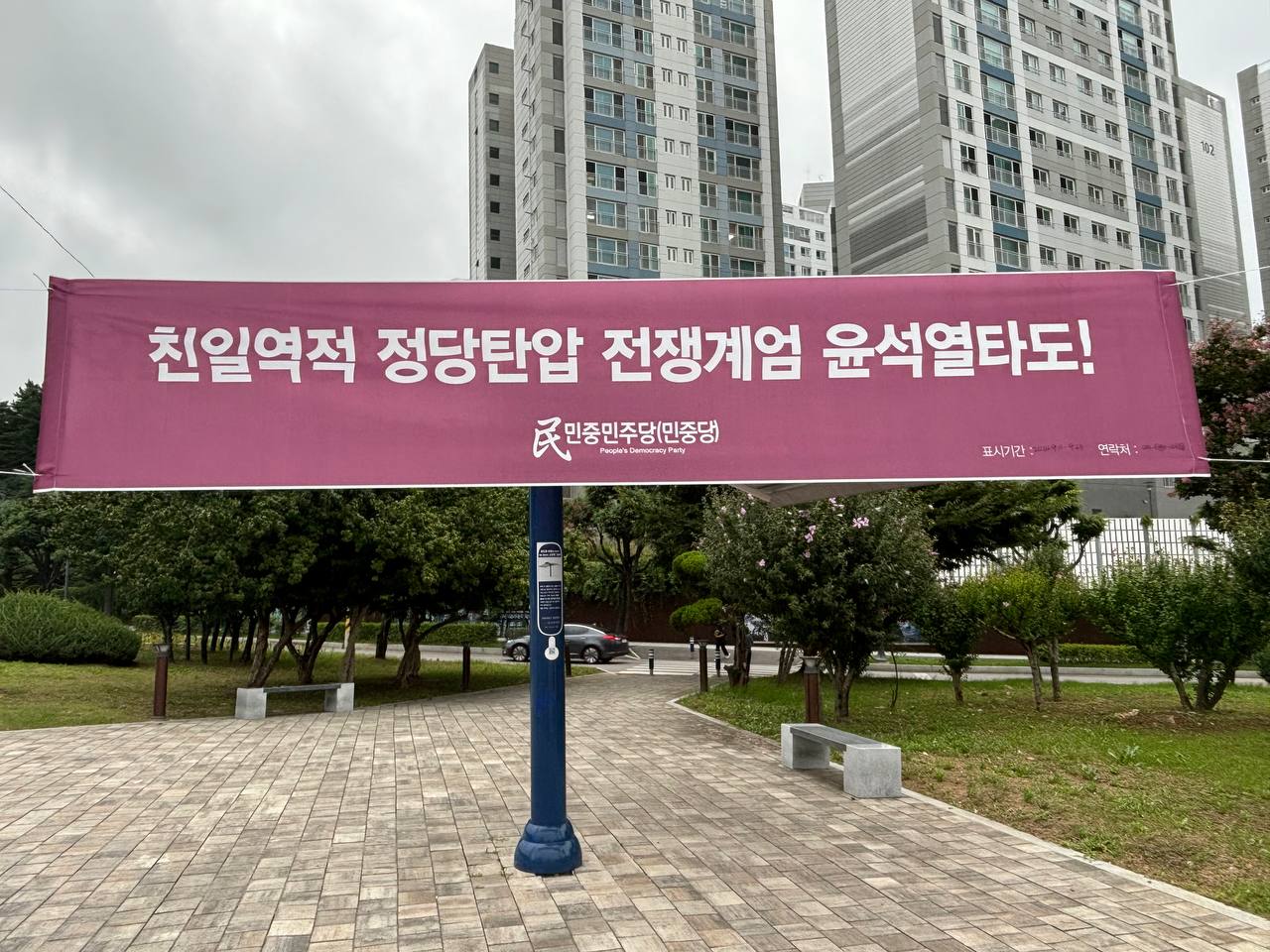 실천정당연설회 민중민주당강원도당 11일 동해 가로막게시 … 〈친일역적 윤석열타도!〉 2024년 9월 12일 FacebookTwitter 11일 민중민주당(민중당)은 동해 천곡동사거리·시청앞로터리·동해항입구에 가로막 <검찰파쇼 정당탄압 전쟁계엄 윤석열타도!>, <친일역적 정당탄압 전쟁계엄 윤석열타도!> 가로막을 게시했다. 파쇼탄압에 반대하는 민중민주당의 투쟁은 계속된다.