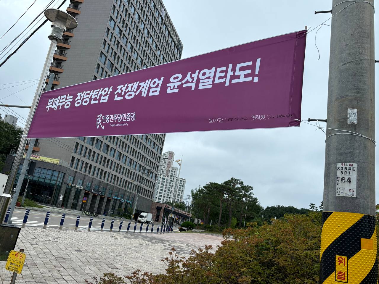 정당연설회 민중민주당강원도당 13일 양양 가로막게시 … 〈정당탄압 윤석열타도!〉 2024년 9월 14일 FacebookTwitter 13일 민중민주당(민중당)은 강원도 양양 종합여객터미널앞·구교교차로에 가로막 <부패무능 정당탄압 전쟁계엄 윤석열타도!>, <친일역적 정당탄압 전쟁계엄 윤석열타도!>를 게시했다. 파쇼탄압에 반대하는 민중민주당의 투쟁은 계속된다.