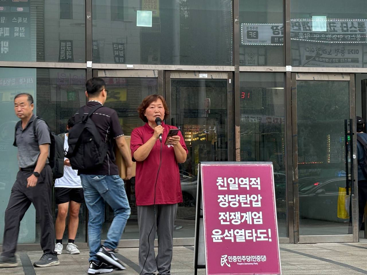 정당연설회와 함께 당신문 民122호 <친일역적 정당탄압 전쟁계엄 윤석열타도!>를 배포했다.
