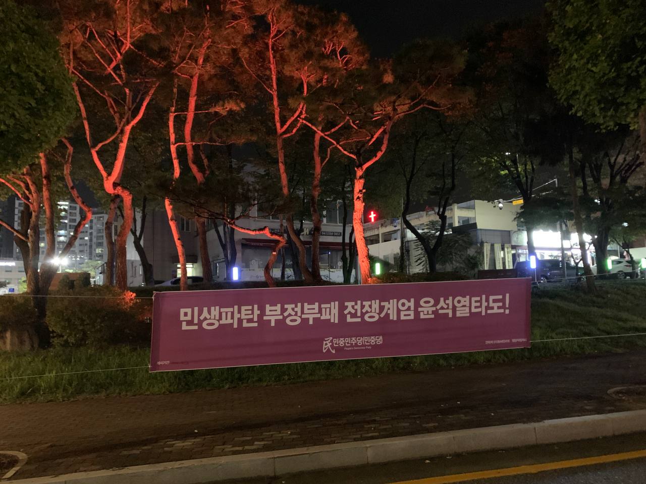 정당연설회 민중민주당충남도당, 14일 〈윤석열타도!〉가로막게시 2024년 10월 15일 FacebookTwitter 14일 민중민주당(민중당)충남도당은 충남 예산터미널앞에 <민생파탄 부정부패 전쟁계엄 윤석열타도!> 구호의 가로막을 게시했다.