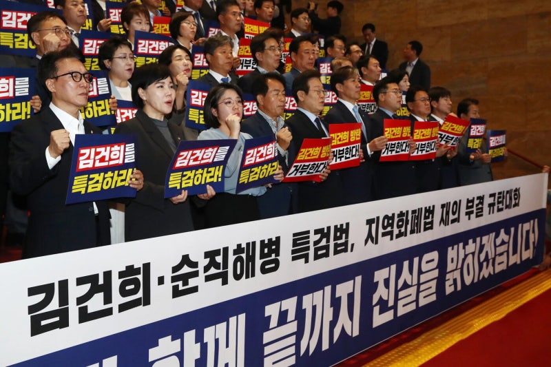 10.7 국감첫날 법제사법위국감에서는 명태균에 의해 제기된 김건희공천개입의혹이 집중적으로 다뤄졌다. 야당은 김대남의 공기업낙하산인사배후에도 김건희의 역할이 있다고 보고 대응한다는 입장이다. 국회행정안전위원회국감에는 대통령관저불법증축의혹을 받고있는 <21그램> 김태영·이승만대표2인에 대해 동행명령장을 발부하면서 국민당(국민의힘)의원들이 퇴장하는등 파행을 빚었다. 이들은 이날 국감에 증인으로 채택됐지만 불출석했다. 국토교통위원회국토교통부국감에서도 대통령관저불법증축의혹이 거론됐다. 한편 양평고속도로종점변경특혜의혹도 다뤄졌다. 문화체육관광위원회문화체육관광부국감에서도 김건희가 KTV의 무관중국악공연을 일부인사들과 관람했다는 의혹과 관련 10.15 국감증인을 채택해야한다는 의견들이 나왔다. 10.8 권익위에 대한 국감에서는 <김건희디올백>사건종결처리와 고인이 된 김모부패방지국장과 관련해 <조작보도>·<법적책임>발언등에 대해 지적됐다. 같은날 교육위에서는 김건희논문표절이 다뤄졌다. 이후 외교통일위에서는 윤석열·김건희해외순방에 대한 논란과 의혹들이, 국방위에서는 <윤석열정부계엄령준비설>, 채해병수사외압의혹과 대통령실이전관련의혹들이, 금감위국감에서는 삼부토건주가조작의혹이 다뤄질것으로 예상되고있다.