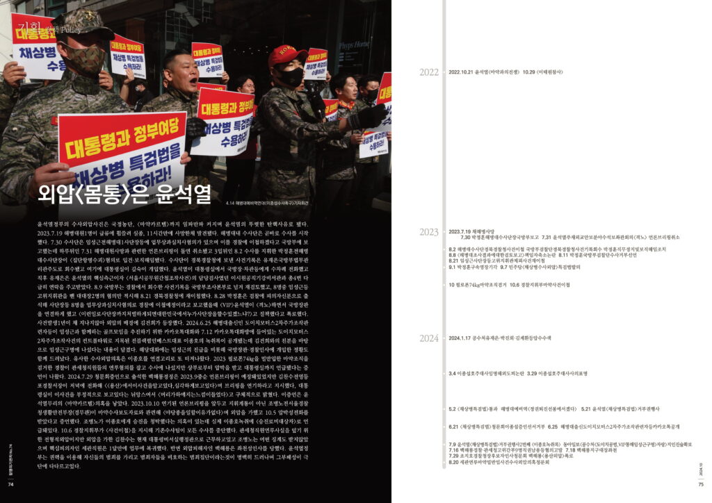 윤석열정부의 수사외압사건은 국정농단, <마약카르텔>까지 일파만파 커지며 윤석열의 뚜렷한 탄핵사유로 됐다. 2023.7.19 해병대원1명이 급류에 휩쓸려 실종, 11시간만에 사망한채 발견됐다. 해병대내 수사단은 곧바로 수사를 시작했다. 7.30 수사단은 임성근전해병대1사단장등에 업무상과실치사혐의가 있으며 이를 경찰에 이첩하겠다고 국방부에 보고했는데 하루뒤인 7.31 해병대원사망과 관련한 언론브리핑이 돌연 취소됐고 3일뒤인 8.2 수사를 지휘한 박정훈전해병대수사단장이 <집단항명수괴>혐의로 입건·보직해임됐다. 수사단이 경북경찰청에 보낸 사건기록은 유재은국방부법무관리관주도로 회수됐고 여기에 대통령실이 깊숙이 개입했다. 윤석열이 대통령실에서 국방장·차관등에게 수차례 전화했고 직후 유재은은 윤석열의 핵심측근이자 <서울시공무원간첩조작사건>의 담당검사였던 이시원공직기강비서관과 총4번 다급히 연락을 주고받았다. 8.9 국방부는 경찰에서 회수한 사건기록을 국방부조사본부로 넘겨 재검토했고, 8명중 임성근등 고위지휘관을 뺀 대대장2명의 혐의만 적시해 8.21 경북경찰청에 재이첩했다. 8.28 박정훈은 검찰에 피의자신분으로 출석해 사단장등 8명을 업무상과실치사혐의로 경찰에 이첩예정이라고 보고했을때 <VIP>윤석열이 <격노>하면서 국방장관을 연결하게 했고 <이런일로사단장까지처벌하게되면대한민국에서누가사단장을할수있겠느냐?>고 질책했다고 폭로했다. 사건발생1년이 채 지나지않아 외압의 배경에 김건희가 등장했다. 2024.6.25 해병대출신인 도이치모터스2차주가조작관련자등이 임성근과 함께하는 골프모임을 추진하기 위한 카카오톡대화와 7.12 카카오톡대화방에 들어있는 도이치모터스2차주가조작사건의 컨트롤타워로 지목된 전블랙펄인베스트대표 이종호의 녹취록이 공개됐는데 김건희와의 친분을 바탕으로 임성근구명에 나섰다는 내용이 담겼다. 해당대화에는 임성근의 진급을 비롯해 국방장관·경찰인사에 개입한 정황도 함께 드러났다. 유사한 수사외압의혹은 이종호를 연결고리로 또 터져나왔다. 2023 필로폰74㎏을 밀반입한 마약조직을 검거한 경찰이 관세청직원들의 연루혐의를 잡고 수사에 나섰지만 상부로부터 압박을 받고 대통령실까지 언급됐다는 증언이 나왔다. 2024.7.29 청문회증인으로 출석한 백해룡경정은 2023.9중순 언론브리핑이 예정돼있었지만 김찬수전영등포경찰서장이 저녁에 전화해 <<용산>에서이사건을알고있다,심각하게보고있다>며 브리핑을 연기하라고 지시했다, 대통령실이 이사건을 부정적으로 보고있다는 뉘앙스여서 <머리가하얘지는느낌이들었다>고 구체적으로 밝혔다. 이증언은 윤석열무리의 <마약카르텔>의혹을 낳았다. 2023.10.10 연기된 언론브리핑을 앞두고 지휘계통이 아닌 조병노전서울경찰청생활안전부장(경무관)이 마약수사보도자료와 관련해 <야당좋을일할이유가없다>며 외압을 가했고 10.5 압박성전화를 받았다고 증언했다. 조병노가 이종호에게 승진을 청탁했다는 의혹이 있는데 실제 이종호녹취에 <승진로비대상자>로 언급돼있다. 10.6 경찰지휘부가 <사건이첩>을 지시해 기존수사팀이 모든 수사를 중단했다. 관세청직원연루사실을 덮기 위한 전형적외압이지만 외압을 가한 김찬수는 현재 대통령비서실행정관으로 근무하고있고 조병노는 어떤 징계도 받지않았으며 핵심피의자인 세관직원은 1달만에 업무에 복귀했다. 반면 외압피해자인 백해룡은 좌천성인사를 당했다. 윤석열정부는 권력을 이용해 자신들의 범죄를 가리고 범죄자들을 비호하는 범죄집단이라는것이 명백히 드러나며 그부패성이 극단에 다다르고있다.