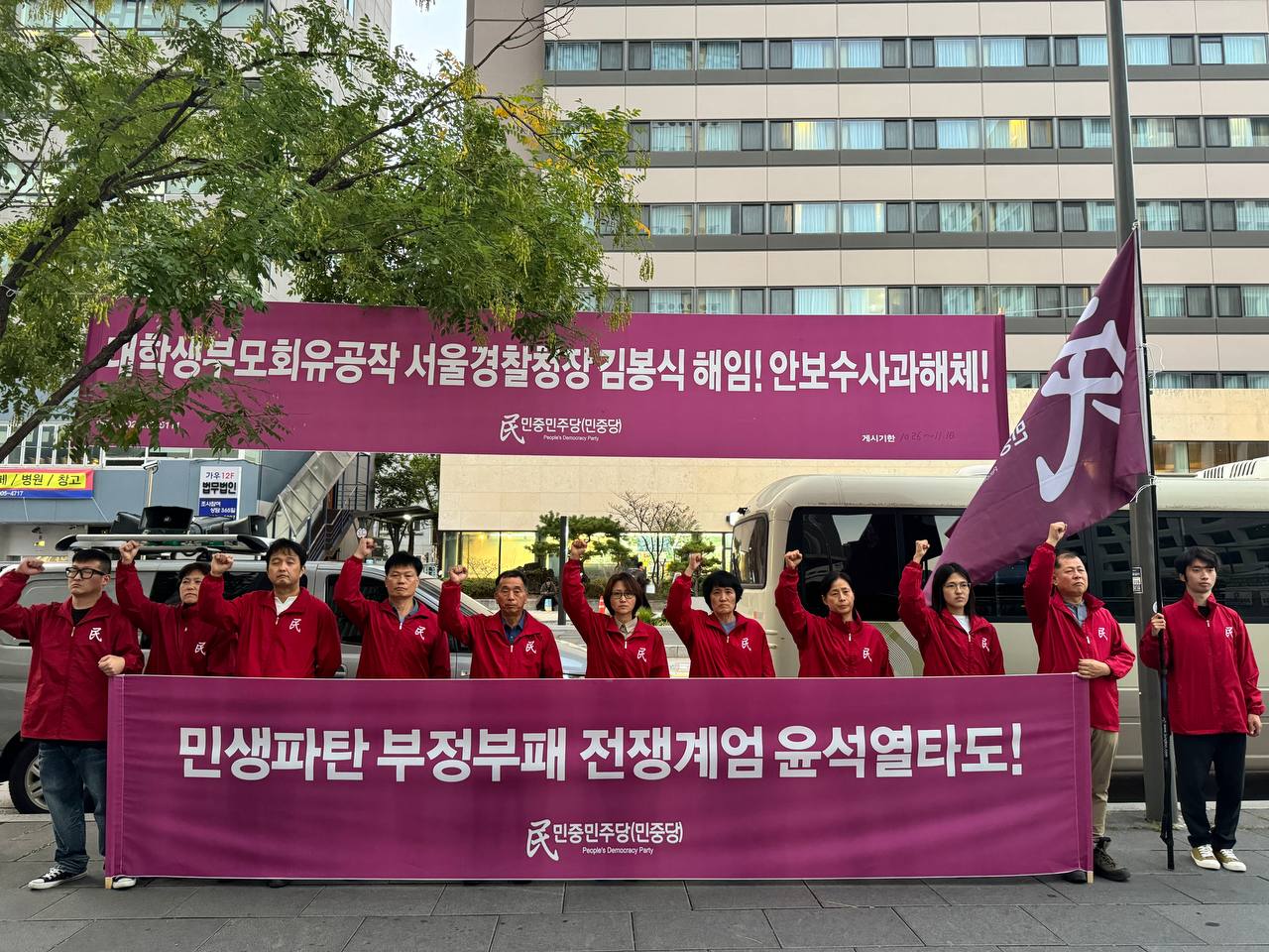 당원들은 <민생파탄 부패무능 전쟁계엄 윤석열 타도하자!>, <민생파탄범 국정농단범 윤석열 타도하자!>, <파쇼탄압 국지전도발 계엄모의 윤석열 타도하자!> 구호를 힘차게 외쳤다.