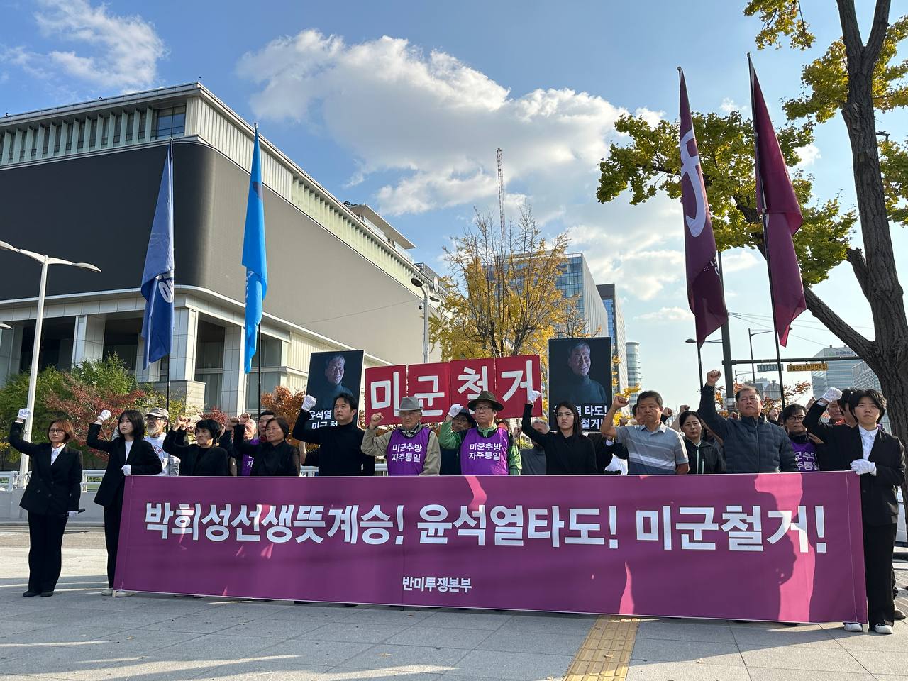 2일 반미투쟁본부는 미대사관앞에서 <박희성선생뜻계승! 윤석열타도! 미군철거!> 추모집회를 진행했다.