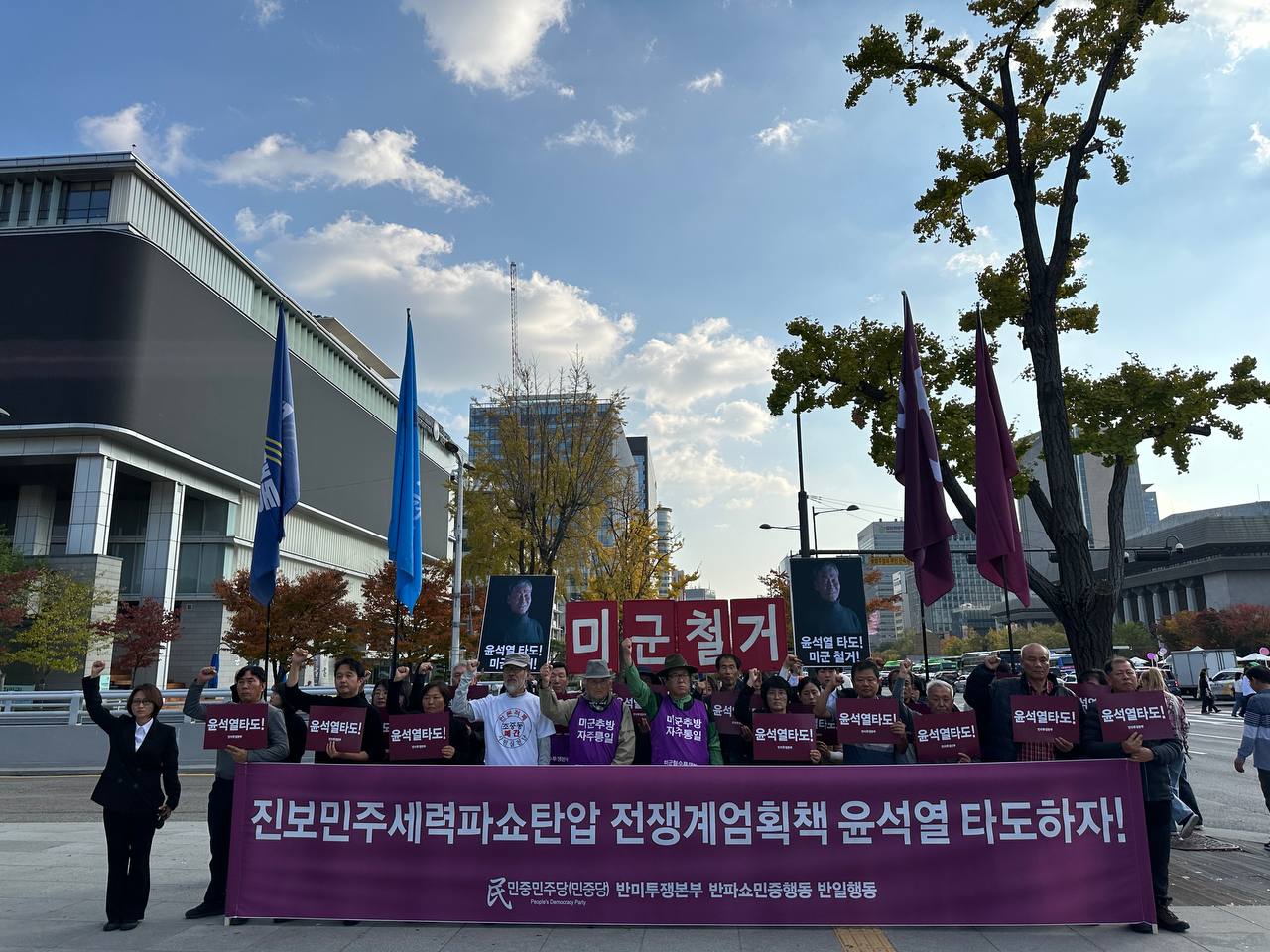 2일 민중민주당(민중당)·반미투쟁본부·반파쇼민중행동·반일행동은 미대사관앞에서 <진보민주세력파쇼탄압 전쟁계엄획책 윤석열타도!> 반파쇼반제집회를 진행했다.