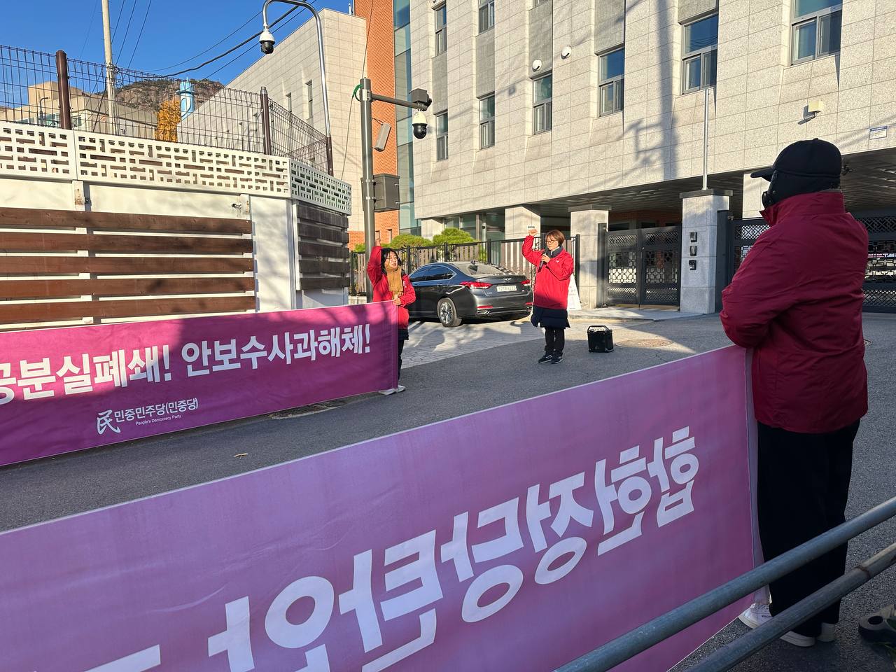 엄경애민중민주당인천시당위원장은 <이 나라를 나라가 아닌 지경으로 만든 것이 누구인가. 윤석열·김건희가 저지른 온갖 부패비리와 국정농단은 탄핵으로 끝낼 수준을 넘어선지 오래다.>라며 <안보수사과는 정신차려야 한다. 언제까지 윤석열의 부패비리를 비호할 것이며, 조작수사와 허위날조수사로 파쇼탄압의 앞잡이노릇을 할 것인가.>라고 꼬집었다.
