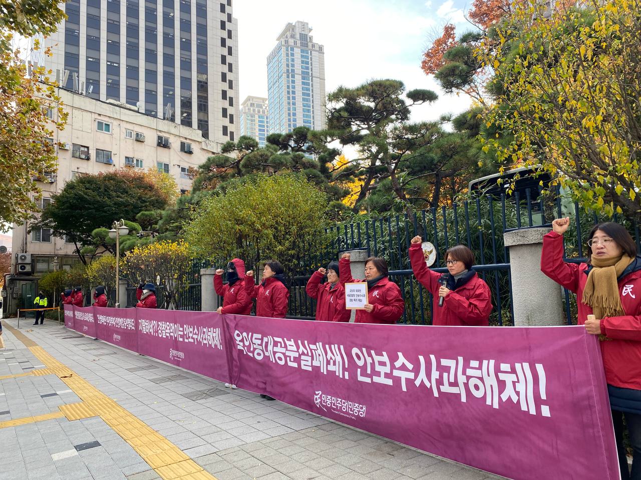 민중민주당 경찰청앞 정당연설회·항의공문전달 … 〈피의자 회유한 서울경찰청안보수사과 경찰 즉각해임!〉