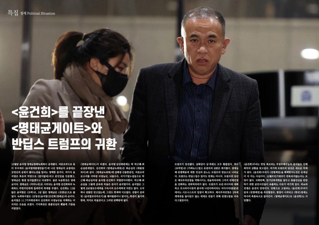 <윤건희>무리는 연일 폭로되는 부정부패무능의 증거들로 인해 최악의 상황을 맞고있다. 여기에 트럼프의 당선은 새로운 악재가 된다. <윤건희>무리가 <전쟁계엄>을 획책한다는것은 온세상이 다 아는 사실이다. 10월무인기테러가 반복되지않는다는 보장이 없다. 국회탄핵, 임기단축개헌을 앞두고 촛불민심을 탄압하기 위한 공안사건들이 속출하는 이유가 여기에 있다. 파쇼와 전쟁은 동전의 양면이다. 안팎으로 고립되는 <윤건희>무리가 끝내 <전쟁계엄>을 추진할경우, 평정이 시작되고 <한국>정세는 역사의 폭풍속으로 들어간다. <명태균게이트>로 <윤건희>는 사망했다.