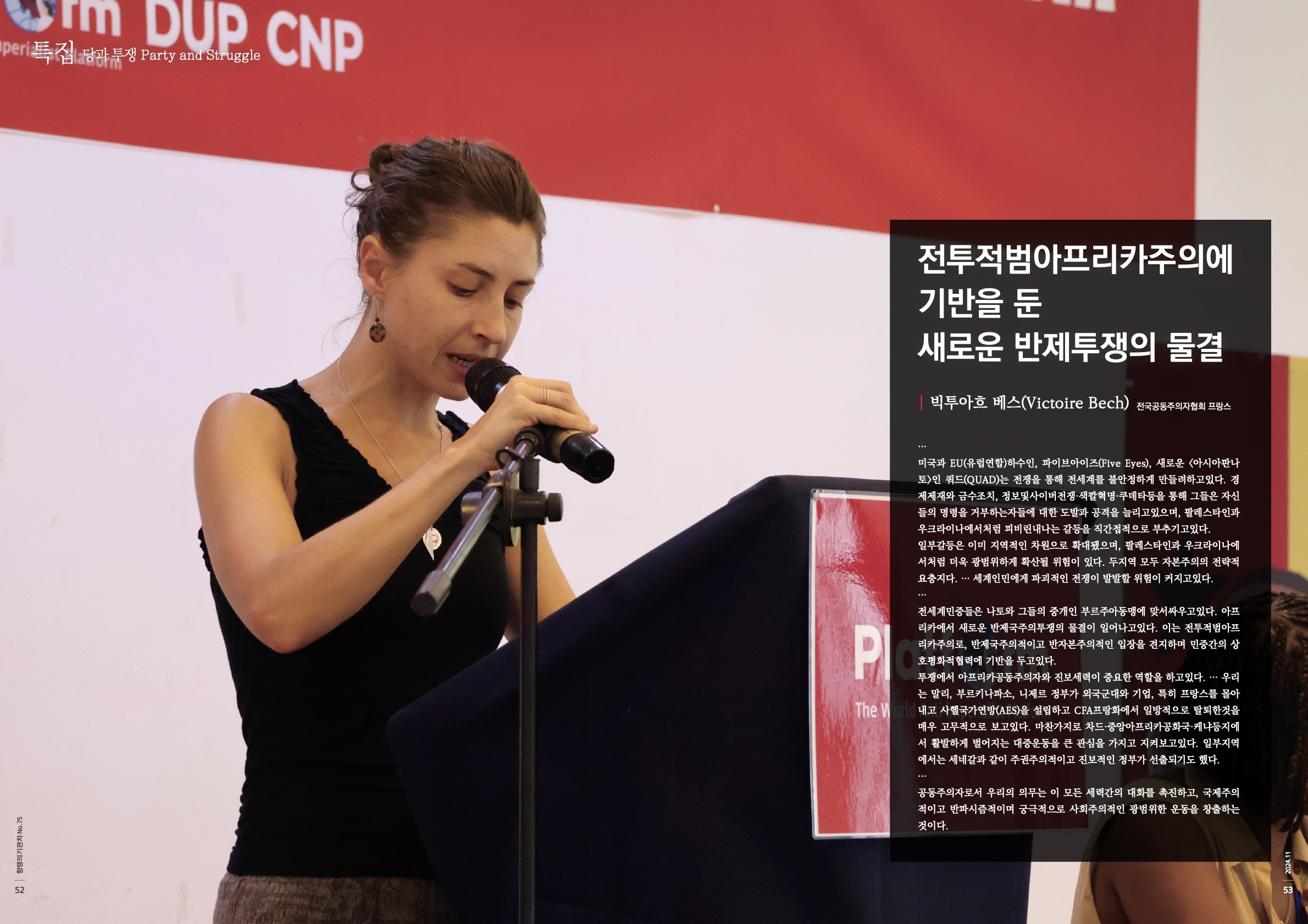 투쟁에서 아프리카공동주의자와 진보세력이 중요한 역할을 하고있다. ⋯ 우리는 말리, 부르키나파소, 니제르 정부가 외국군대와 기업, 특히 프랑스를 몰아내고 사헬국가연방(AES)을 설립하고 CFA프랑화에서 일방적으로 탈퇴한것을 매우 고무적으로 보고있다. 마찬가지로 차드·중앙아프리카공화국·케냐등지에서 활발하게 벌어지는 대중운동을 큰 관심을 가지고 지켜보고있다. 일부지역에서는 세네갈과 같이 주권주의적이고 진보적인 정부가 선출되기도 했다.