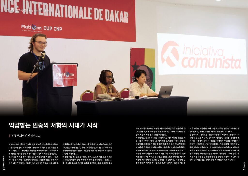 공동주의이니셔티브는 사헬국가연맹이 독립하고 테러와의 싸움에서 성공을 거둔후, 꼭두각시 마키살을 물리친 세네갈민중의 지붕아래에서 열린 이 새로운 반제국주의집회를 환영한다. 그리고 아밀까르까브랄, 티티나실라, 사모라마셸, 아고스티뉴네투, 무아마르알카다피, 엘오우알리무스타파사예드와 같은 위대한 인물들의 유산이 범아프리카혁명의 어깨위에 있으며, 불멸의 세월을 이어가는 수많은 남성과 여성들이 그위에 있다. 우리는 이행사가 성공적인 행사가 될것이며 제국주의에 맞서 민중이 승리하는 길을 정의하는데 기여할것이라고 확신한다.