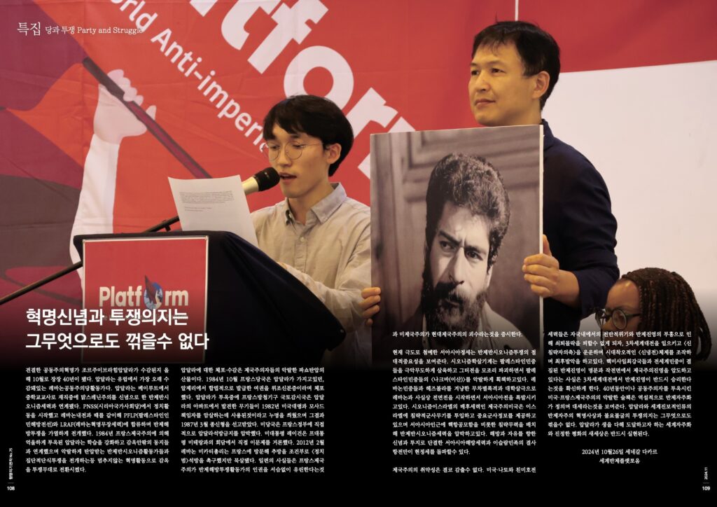 견결한 공동주의혁명가 조르주이브라힘압달라가 수감된지 올해 10월로 장장 40년이 됐다. 압달라는 유럽에서 가장 오래 수감돼있는 레바논공동주의당활동가다. 압달라는 베이루트에서 중학교교사로 재직중에 맑스레닌주의를 신념으로 한 반제반시오니즘세력과 연계됐다. PNSS(시리아국가사회당)에서 정치활동을 시작했고 레바논내전과 때를 같이해 PFLP(팔레스타인인민해방전선)와 LRAF(레바논혁명무장세력)에 합류하며 반제해방투쟁을 가열하게 전개했다. 1984년 프랑스제국주의에 의해 억울하게 투옥된 압달라는 학습을 강화하고 감옥안팎의 동지들과 연계했으며 악랄하게 탄압받는 반제반시오니즘활동가들과 집단적단식투쟁을 전개하는등 멈추지않는 혁명활동으로 감옥을 투쟁무대로 전환시켰다.
