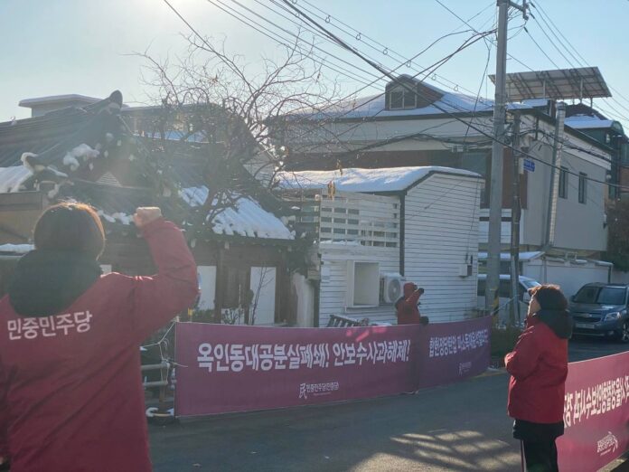 29일 민중민주당(민중당)은 서울경찰청안보수사과(구옥인동대공분실)앞에서 출근길 정당연설회를 진행했다.