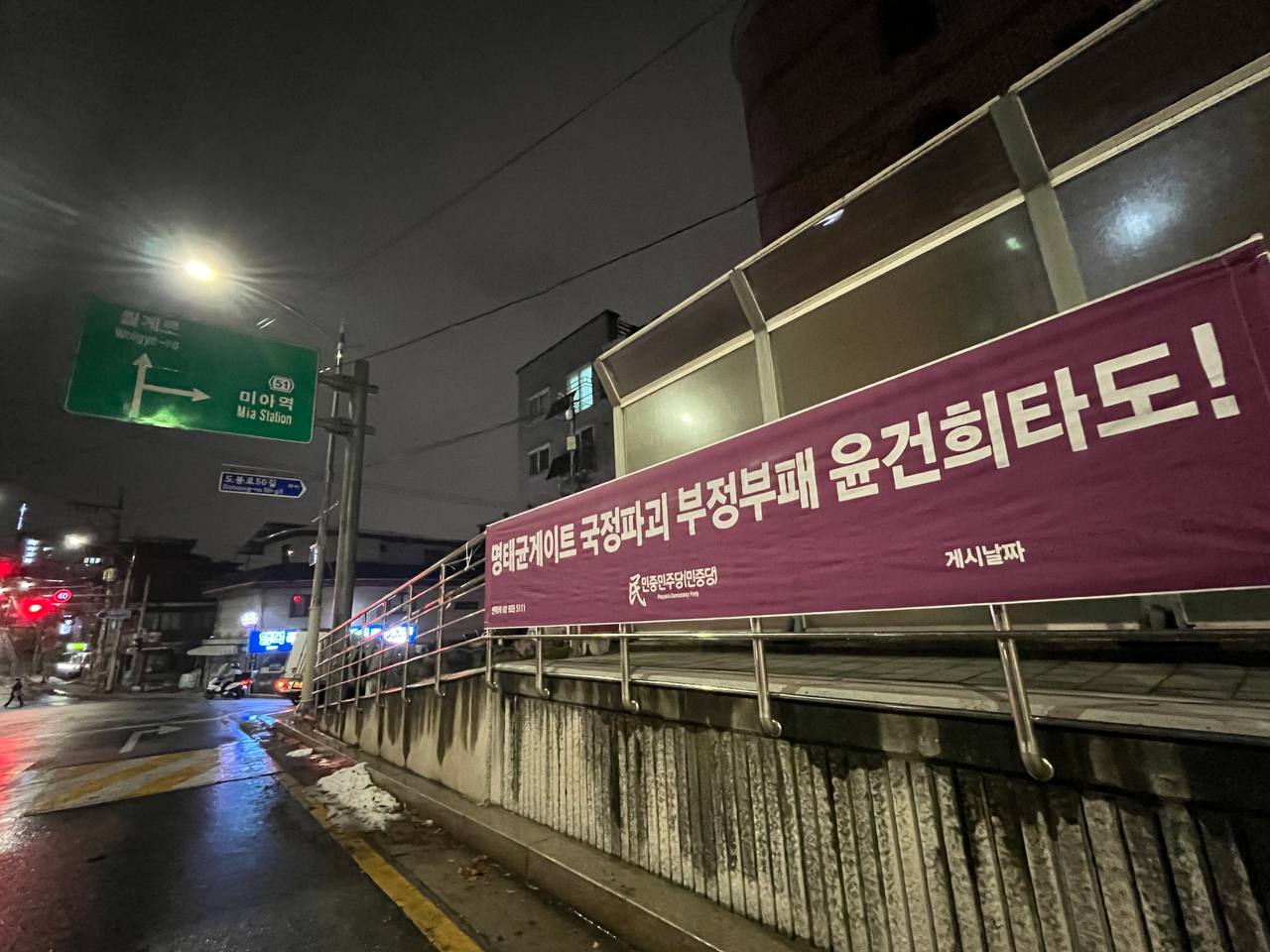 30일 민중민주당(민중당)은 서울 종로구 부암동·청계천로·통의동·서린동, 성북구 정릉동·길음동·보문동, 강북구 수유1동·수유2동·수유3동·미아동·번1동·번2동·번3동·송중동·송천동 에 <명태균게이트 국정파괴 부정부패 윤건희타도!> 구호의 가로막을 총 26개 게시했다.