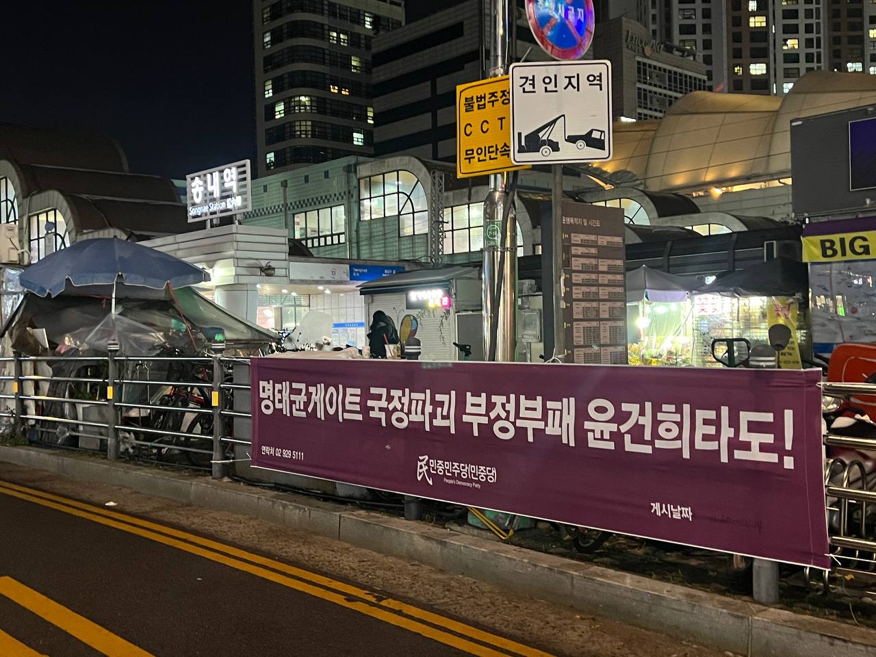 정당연설회 민중민주당, 30일 경기 부천 〈명태균게이트 국정파괴 부정부패 윤건희타도!〉가로막50개게시 2024년 12월 1일 FacebookTwitter 30일 민중민주당(민중당)은 경기 부천시 오정구 고강1동·원종1동·신흥동·삼정동, 원미구 도당동·약대동·상1동·상2동·상3동·중동·중1동·중2동·심곡본동·심곡1동·심곡2동·심곡3동·춘의동·원미1동·원미2동·역곡동, 소사구 송내동·송내2동·소사동·소사본동에 <명태균게이트 국정파괴 부정부패 윤건희타도!> 구호의 가로막을 총 50개 게시했다.