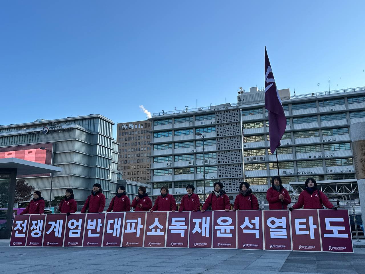 그러면서 <탄핵이 아니라 당장 끌어내려 처벌해야 한다. 국민을 지켜야 할 군대를 동원해 국회를, 국민을 진압하려했다.>며 <국정파괴를 넘어 반헌법적이며, 민주주의 뿌리를 흔드는 심각한 범죄행위를 저지른 윤석열을 더이상 두고 보지 말아야 한다. 민중의 힘으로 하루빨리 끝장내자!>고 호소했다.