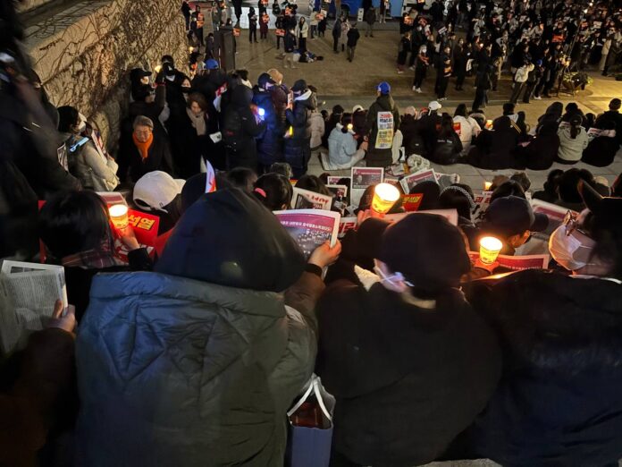 오후6시30분 국회본청앞에서 열린 촛불집회에는 약5000명의 시민들이 집결해 <윤석열을 즉각 탄핵하라!>, <윤석열을 즉각 체포하라!>, <틈을 주면 살아난다! 윤석열을 체포하라!>, <쉴틈없이 몰아치자! 윤석열을 탄핵하라!>, <내란수괴 윤석열을 탄핵하라!> 등 구호를 힘차게 외쳤다.
