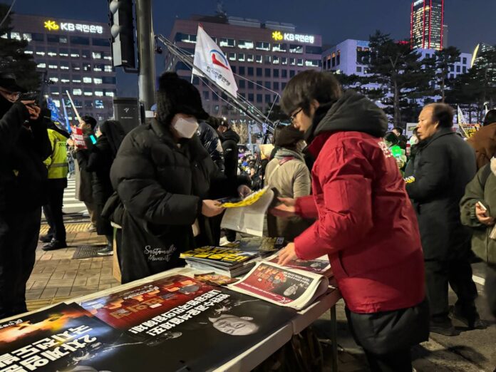 10일 민중민주당(민중당)은 여의도국회앞 촛불집회현장에서 선전전을 강력히 진행했다.