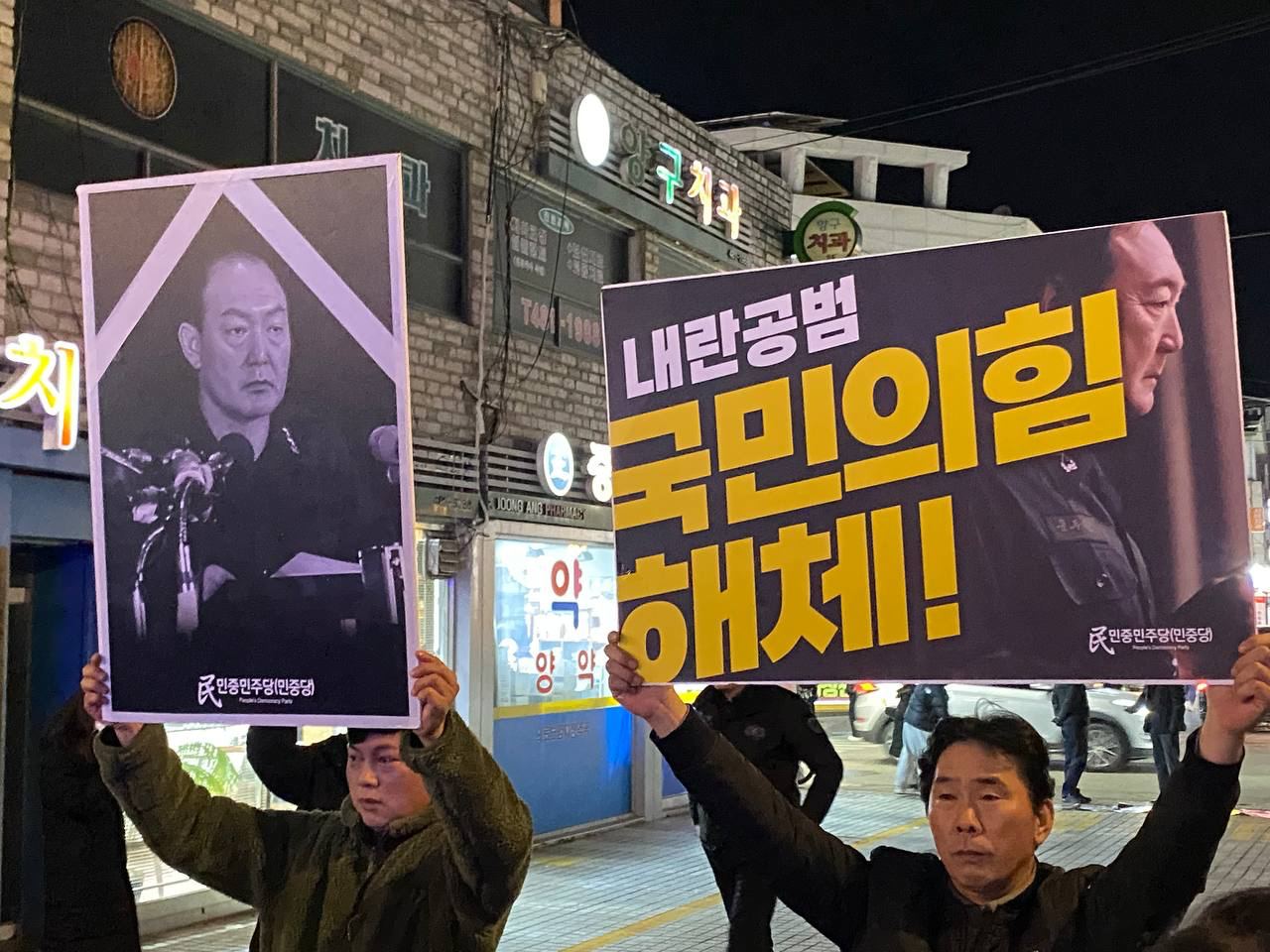 11일 민중민주당(민중당)은 양구민주단체협의회 주최로 옛차없는거리일원에서 열린 촛불문화제에 참석해 <윤석열체포!>를 함께 외쳤다.