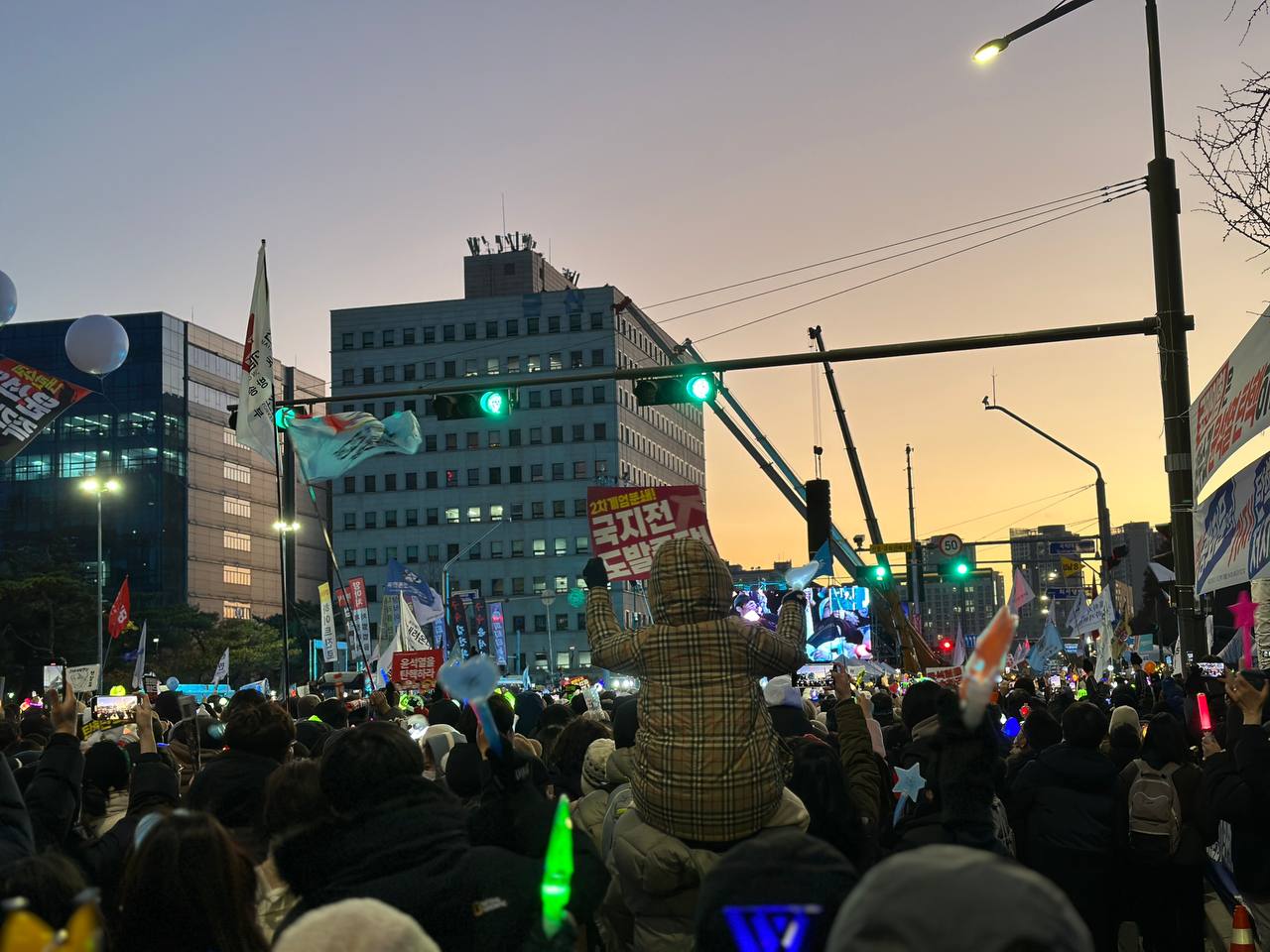 윤석열탄핵소추안은 오후 4시경 재적의원 300명 전원이 표결에 참여한 가운데 찬성 204표, 반대 85표, 기권 3표, 무효 8표로 가결됐다. 집회현장은 민중의 승리를 자축하는 분위기로 순식간에 뒤바뀌며 환호성으로 가득 메워졌다. 시민들은 <국민이 이겼다!>면서 얼싸안고 <내란수괴 윤석열을 즉각 체포하고 구속하라!> 구호를 뜨겁게 외쳤다.