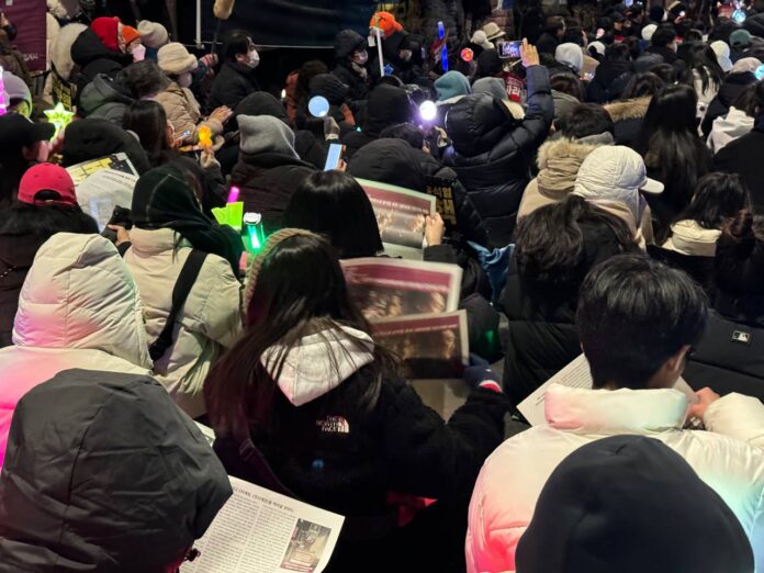 13일 민중민주당(민중당)은 여의도촛불집회현장에서 당신문 民131호 <내란반란수괴 윤석열 체포! 내란공범 국민의힘 해체!>를 배포했다.