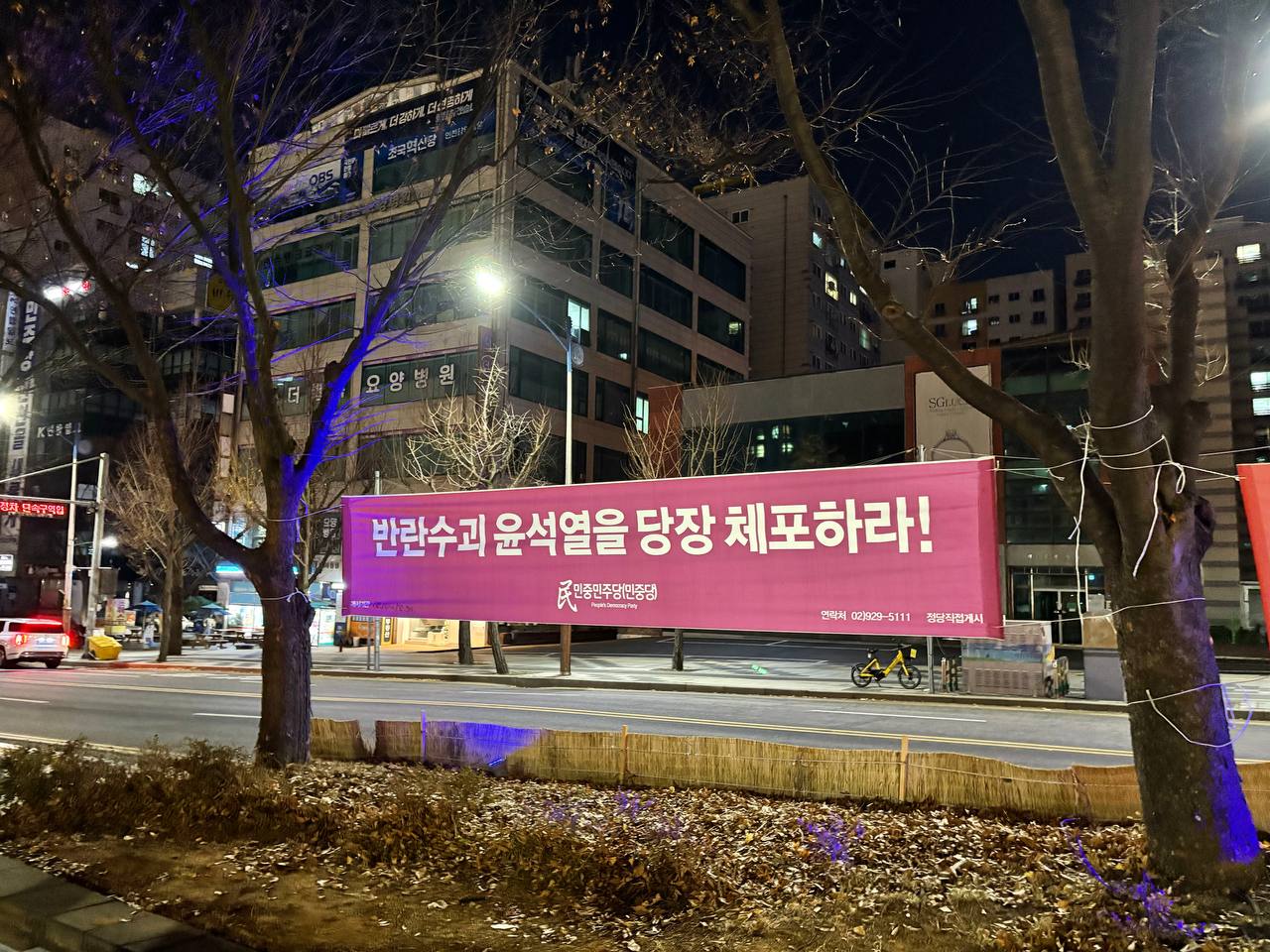 정당연설회 민중민주당, 16일 서울·인천 〈반란수괴 윤석열 당장체포!〉가로막게시 2024년 12월 17일 FacebookTwitter 16일 민중민주당(민중당)은 인천 동춘동이마트앞·인천시청역7번출구·구월동먹자골목무대뒤·인천시청광장, 서울 문래역·문래동꽃밭정원·영등포신세계백화점앞에 <반란수괴 윤석열을 당장 체포하라!> 구호의 가로막을 내걸었다.