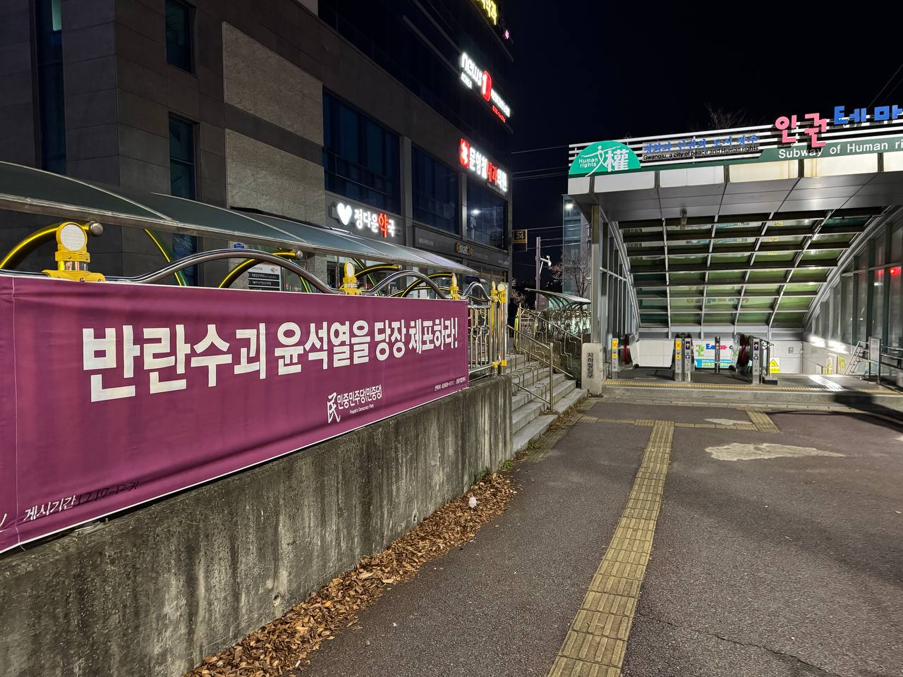 17일 민중민주당(민중당)광주시당은 운암3동행정복지센터앞·경양초교차로·동림동행정복지센터·산동교·광주보건대입구·광주전자공업고등학교앞·보훈병원앞·쌍암동롯데마트앞·첨단중앙로사거리·대촌교차로·북구시민의숲·광산업단지·한국산업단지공단·광주국립과학관앞·운천역앞·상무자유로사거리·광주선거관리위원회앞·광주광역시청앞·상무공원로·5.18자유공원·김대중컨벤션센터앞·광주아울렛앞·광산구청앞·광주송정역앞에 <반란수괴 윤석열을 당장 체포하라!>, <내란공범 국민의힘 해체하라!> 구호의 가로막을 내걸었다.