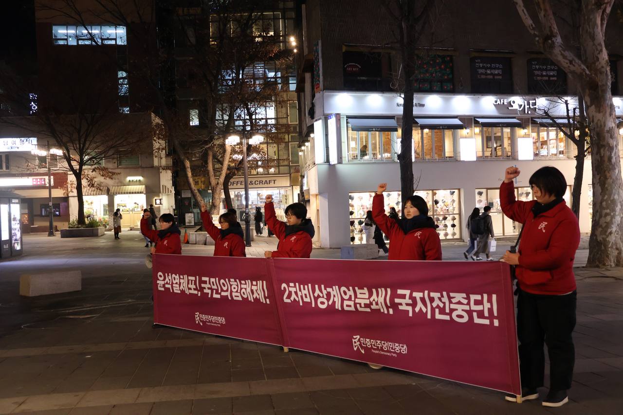 19일 민중민주당(민중당)은 안국사거리에서 정당연설회를 열고 반란수괴윤석열의 체포와 파면을 촉구했다.
