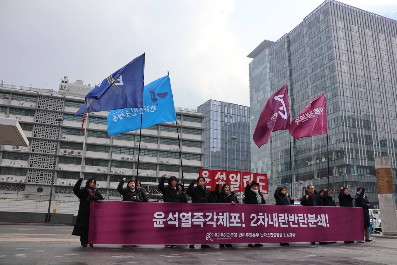 끝으로 참가자들은 성명 <2차내란획책하는 내란반란수괴 윤석열을 긴급체포하라!>를 낭독한 뒤 <민중의노래>를 불렀다.