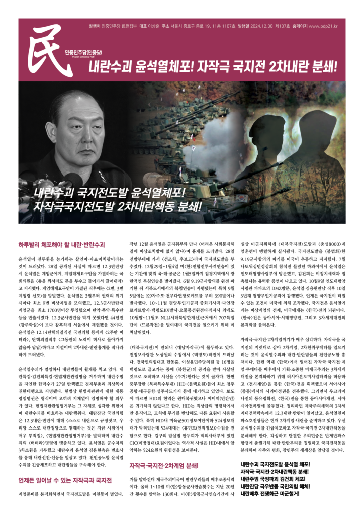 – <내란사태> 2년반 더 끌어가려는 윤석열과 국민의힘 (민들레, 2024.12.28)