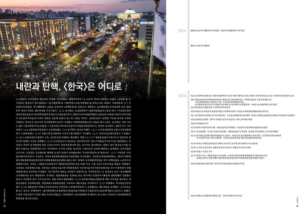 12.3반란은 우리민중의 영웅적인 투쟁에 가로막혔다. 해제직후부터 12.14까지 여의도국회앞은 촛불과 <응원봉>을 든 시민들의 발걸음이 끊이질않았고 <윤석열탄핵>과 <내란반란수괴윤석열체포>를 한목소리로 외쳤다. 이런와중에 12.7 국민당(국민의힘)은 박근혜탄핵의 교훈을 운운하며 <탄핵반대>를 당론으로 채택하고 윤석열탄핵소추안표결에 대거 불참하며 정족수미달로 법안처리를 무산시켰다. 12.12 윤석열은 긴급담화에서 <광란의칼춤을추고있다>면서 <지금껏국정마비와국헌문란을주도한세력과범죄자집단이국정을장악하고,대한민국의미래를위협하는일만큼은어떤일이있어도막아야한다.저는끝까지싸울것>이라며 내란을 선동해 민중의 분노에 기름을 부었다. 200만민중이 집결한 가운데 동요한 국민당의원들이 찬성으로 돌아서며 윤석열탄핵소추안이 가결됐고 헌재(헌법재판소)의 인용을 앞두고있다. 윤석열은 어떤 사과도 없이 <결코멈춰서서는안될것>·<그동안의노력이허사로돌아가지않을까답답하다>는 망언만 늘어놨다. 내란수사가 시작되면서 12.8 김용현전국방장관이 긴급체포됐고 12.9 윤석열이 출국금지됐다. 12.11 조지호경찰청장·김봉식서울경찰청장이 긴급체포됐고 12.16 곽종근특전사령관과 이진우수방사령관이 구속됐다. 12.17 박안수육군참모총장이 구속됐고, 12.18 노상원전정보사령관이 구속, 문상호정보사령관이 체포됐다. 한편 12.11·17 대통령실압수수색시도가 있었지만 경호처의 방해로 사실상 실패했고 12.18 공조본(공조수사본부)은 경호처로부터 <압수수색불승낙사유서>를 전달받았다. 공조본은 피의자 윤석열에게 전날 오전10시까지 정부과천청사에 있는 공수처로 출석하라는 내용이 담긴 출석요구서를 인편과 우편으로 전달했지만 모두 거부되면서 수사에 난항을 겪고있다. 3년이상의 징역에 해당하는 중대범죄, 증거인멸과 도주우려, 긴급성등 긴급체포를 해야할 요건이 완전히 충족됐음에도 추진하지못하는게 현실이다. 12.17 국민당은 민주당(더불어민주당)이 추진하는 국회추천몫헌법재판관인사청문회를 보이콧했다. 권성동국민당원내대표는 <한덕수권한대행은대통령탄핵심판결정전까지헌법재판관을임명할수없다>면서 헌재의 공석재판관임명을 막아 탄핵심판을 노골적으로 방해하고있다. 여야는 12월정기국회에서의 재판관임명절차추진을 위해 이미 11월 3인의 후보추천을 해놓은 상태였다. 국민당은 조한창변호사를, 민주당은 정계선서울서부지방법원장과 마은혁서울서부지법부장판사를 각각 추천하면서 헌법재판관3명의 후임자를 추천했다. 이미 합의한 내용을 국민당이 일방적으로 거부한것이다. 또 권성동은 2017 박근혜탄핵소추위원이던 당시 대법원장이 추천하는 헌법재판관을 임명하는것은 형식적인 임명권이기때문에 권한대행이 임명할수있다고 주장한바 있어 자기모순이다. 한편 한덕수권한대행은 12.19 양곡관리법등6개법안에 대한 거부권을 행사하고 내란특검법과 긴검희특검법, 헌법재판소재판관임명을 거부하며 내란주범을 자처하다가 12.27 탄핵됐다. 박선원민주당의원이 12.20 대통령실이 탄핵소추안표결직전 국민당에 <2주를버텨달라>고 요청했다는 제보내용을 공개했다. 소극적으로 볼수도 있다고 전제하면서 <좀더확장해서보면현재의국면을뒤집기위해2주가필요하다는말로해석될수도있다>고 말했다. 수괴와 주동자들이 여전히 체포·수감되지않았고, 반란범들이 <윤석열방탄>에 혈안이 된 조건은 무엇보다 2차내란반란의 위험성을 경고하고있다.