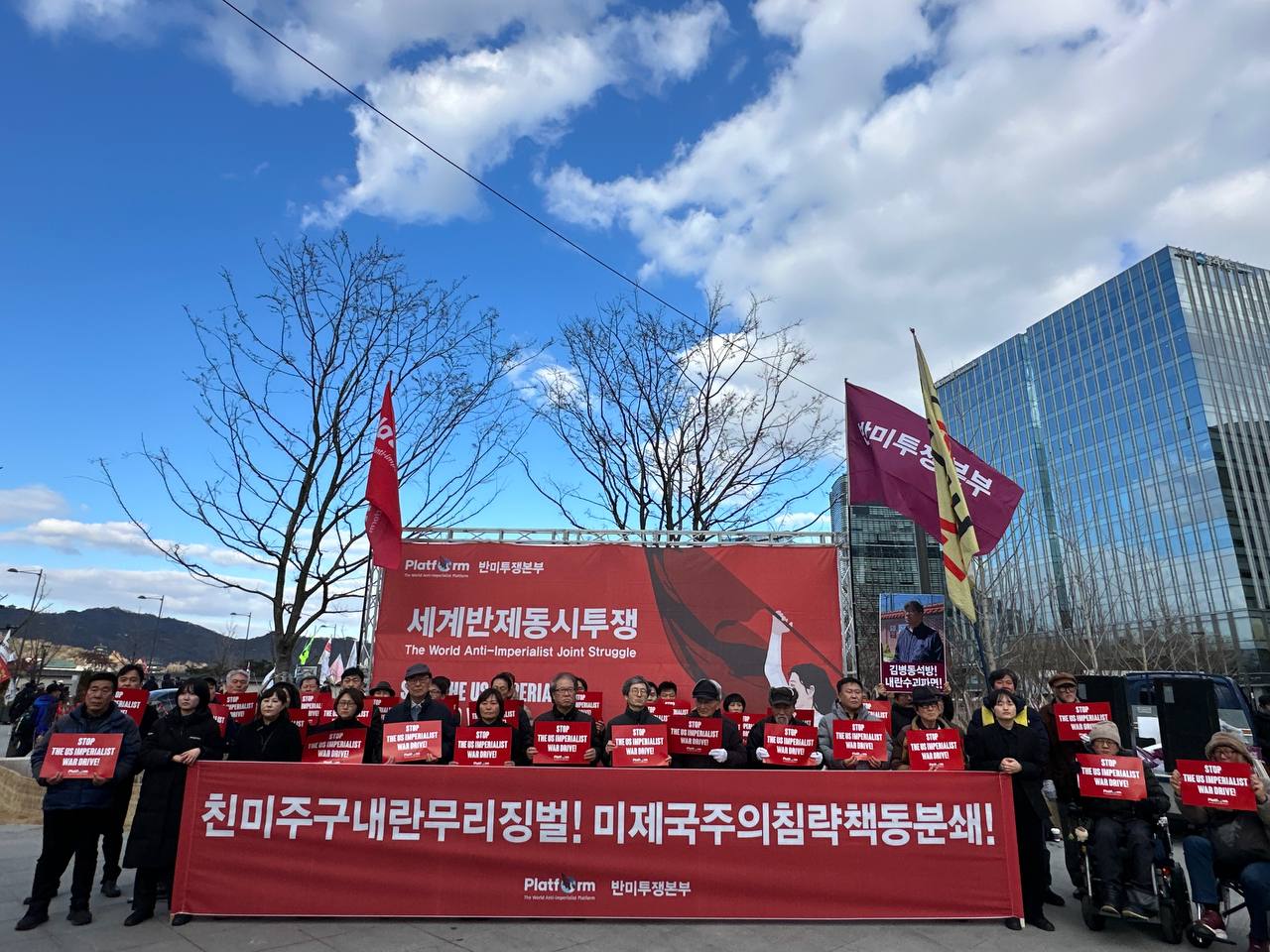 세계반제플랫포옴(The World Anti-imperialist Platform)·반미투쟁본부가 주최하는 <친미주구내란무리징벌! 미제국주의침략책동분쇄!> 1월세계반제동시투쟁이 25일 미대사관앞에서 진행됐다.