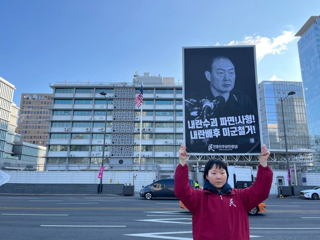 3일 민중민주당(민중당)은 미대사관앞에서 <내란수괴 파면!사형! 내란배후 미군철거!> 구호를 들고 평화시위를 3120일째 전개했다.